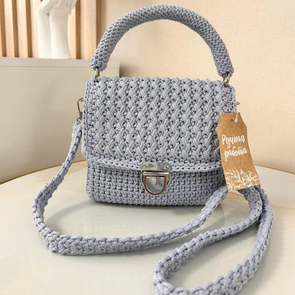 Предлагаем вашему вниманию сумку ручной работы, выполненную из полиэфирного шнура крючком! Крепкая, вместительный сумочка, подходит для пляжа или для прогулок по городу! Также возможно выполнить изделие под ваш вкус и цвет, на заказ! Размеры сумки: Ширина 19 см Высота 16 см Боковинки 15*7см Дно сумки 19*7 см Ручка 27 см Дополнительная ручка 1.20 см