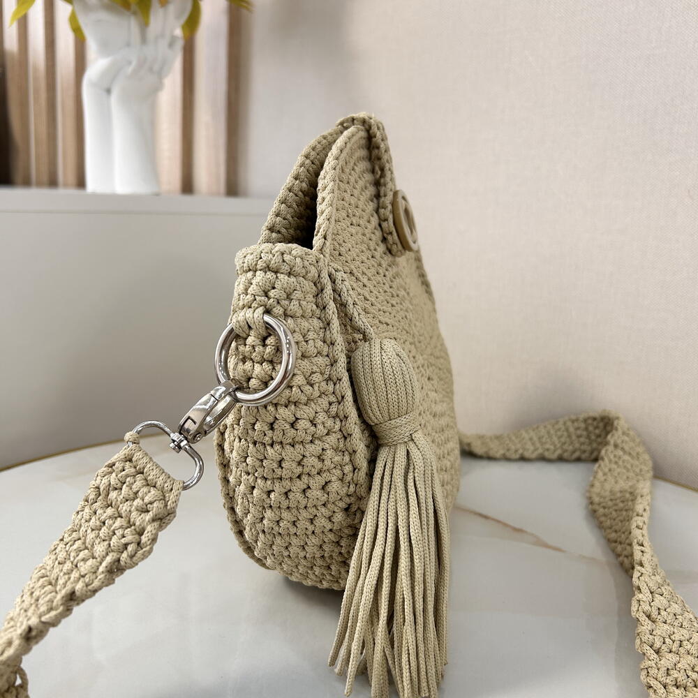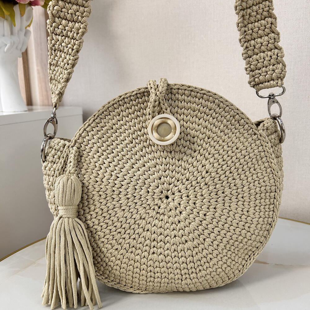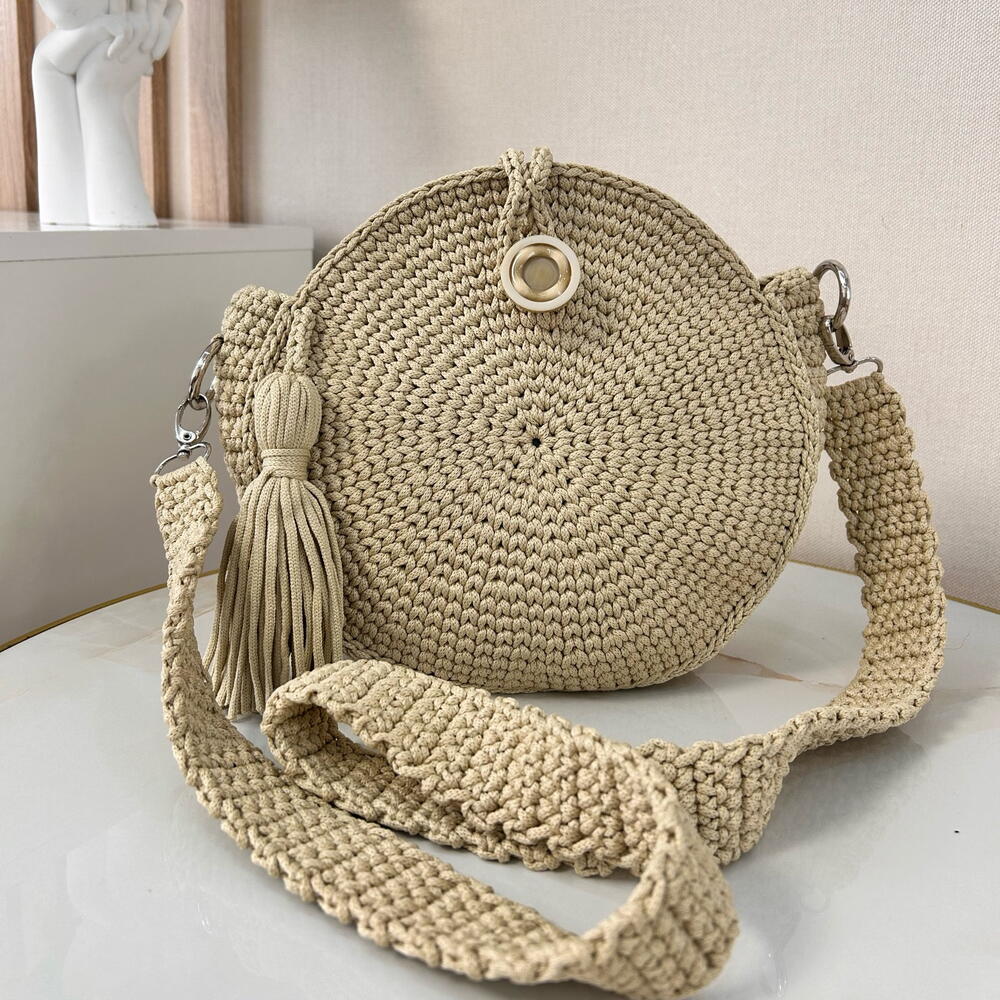 Круглая сумка ручной работы с кисточкой