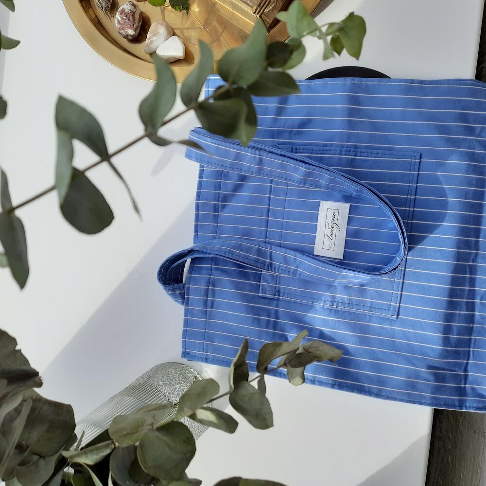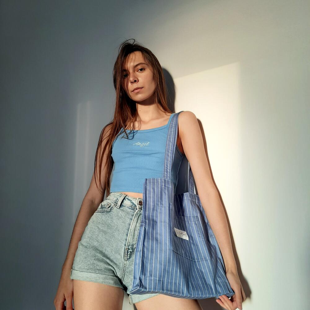 Шоппер из мягкого джинса в полоску с плотным дном. Отлично подойдет для пляжных прогулок.