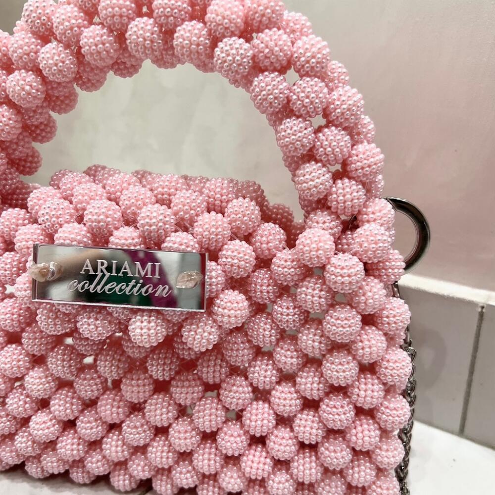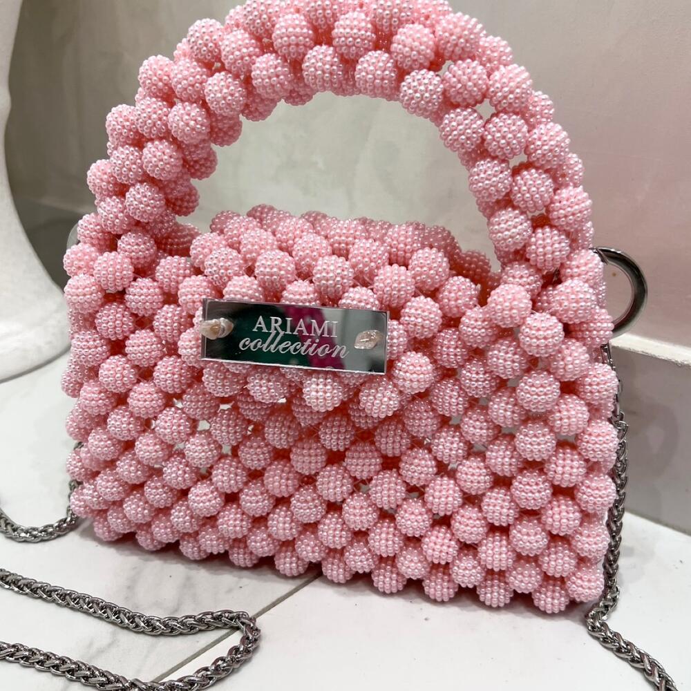Материал: бусины акрил Логотип – зеркальный, крепление с натуральными камнями (камень – горный хрусталь) Параметры: Размер: М Высота с ручкой - 20см Высота без ручки - 12см Ширина - 4см Длина - 20см Цвет: розовый, серебро В комплект входит: – пыльник – цепочка 1м Дополнительно можно заказать: – мешочек во внутрь – аксессуар для сумочки: цепь с жемчужными бусинами 1000₽