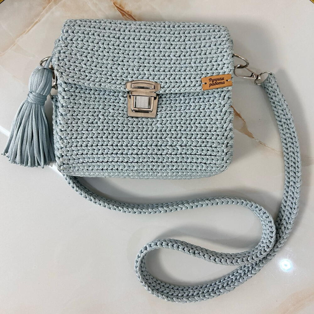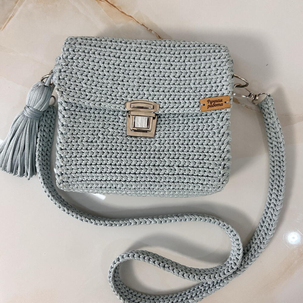 Предлагаем вашему вниманию сумку ручной работы, выполненную из полиэфирного шнура крючком! Крепкая, вместительный сумочка, подходит для пляжа или для прогулок по городу! Также возможно выполнить изделие под ваш вкус и цвет, на заказ! Размеры сумки: Ширина 18 см Высота 15 см Боковинки 15*6 см Дно сумки 18*6 см Ручка 1.20 см Дополнительная ручка 1.20 см