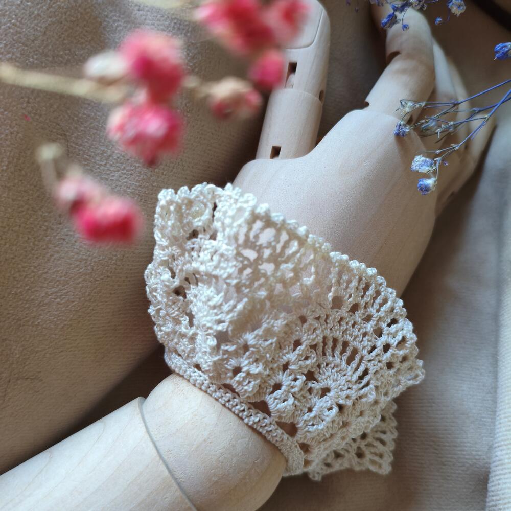 Съёмные кружевные манжеты. Связаны из тоненькой хлопковой нити. Чудесно дополнят ваш образ! 😍 Аккуратная пуговка надежно фиксирует манжет на запястье. Обхват запястья для комфортной носки данных манжет 19 см и меньше. Возможен повтор в другом цвете. (Повтор может быть дороже)