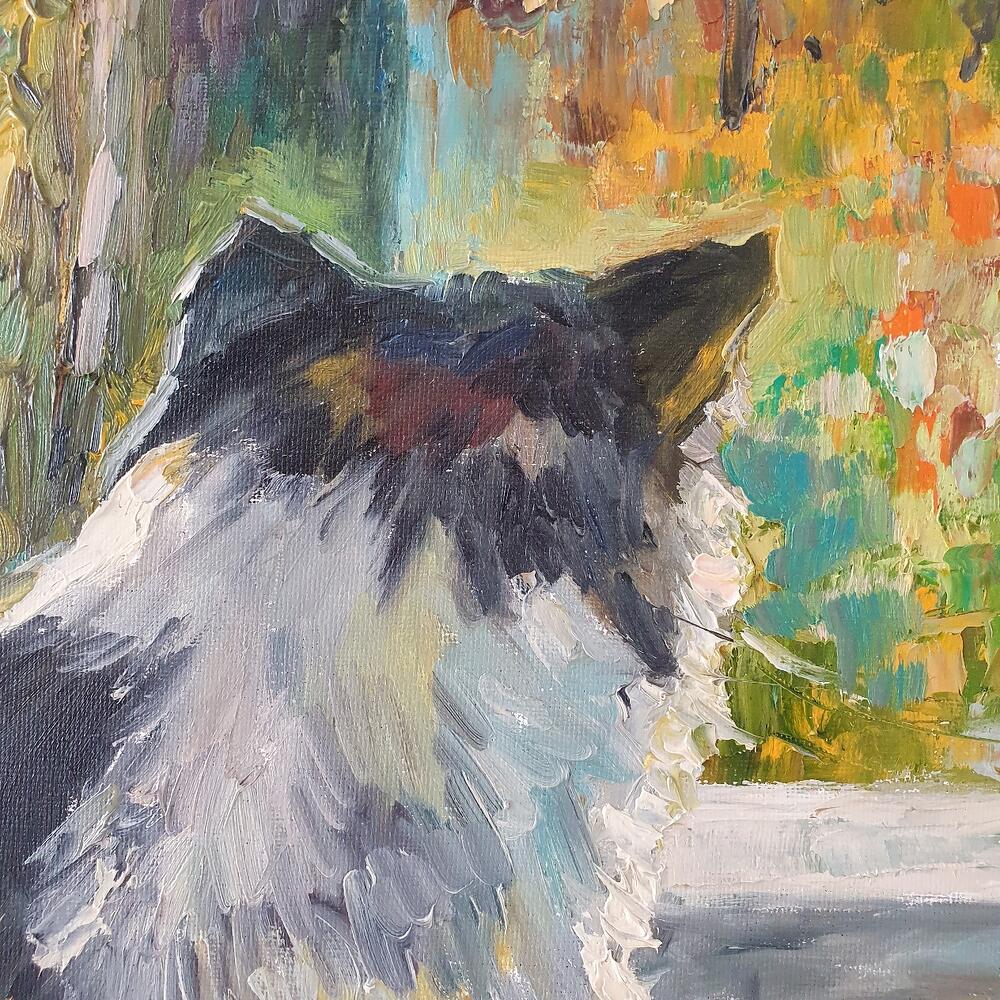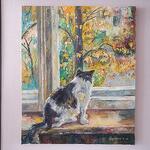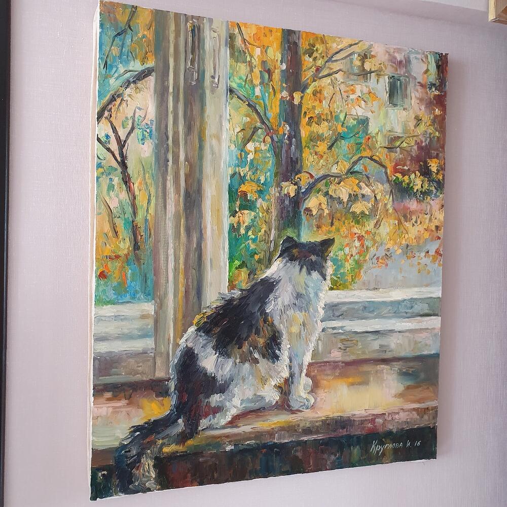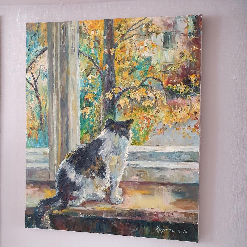 Большая картина маслом Осень Кот "Осенняя тишина"