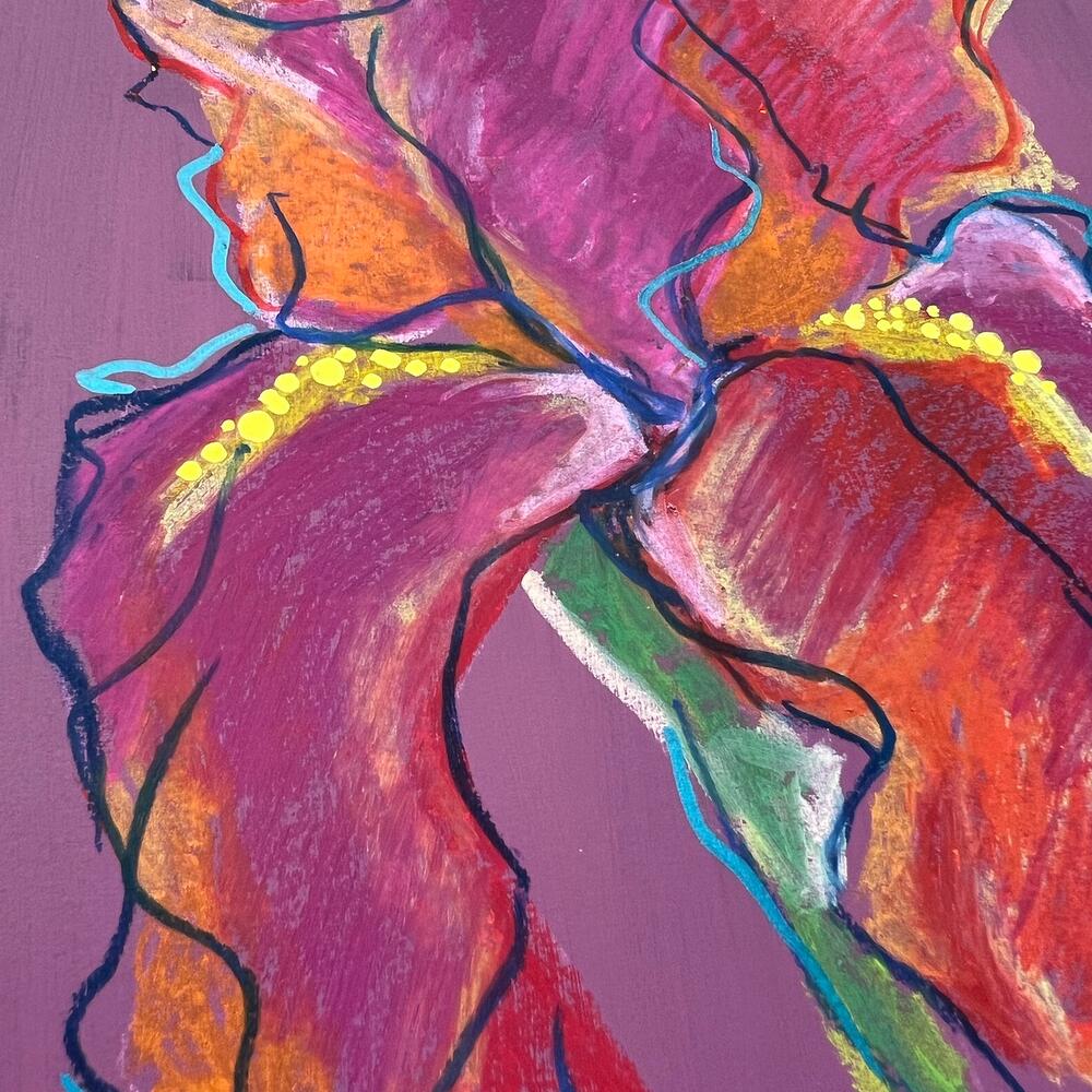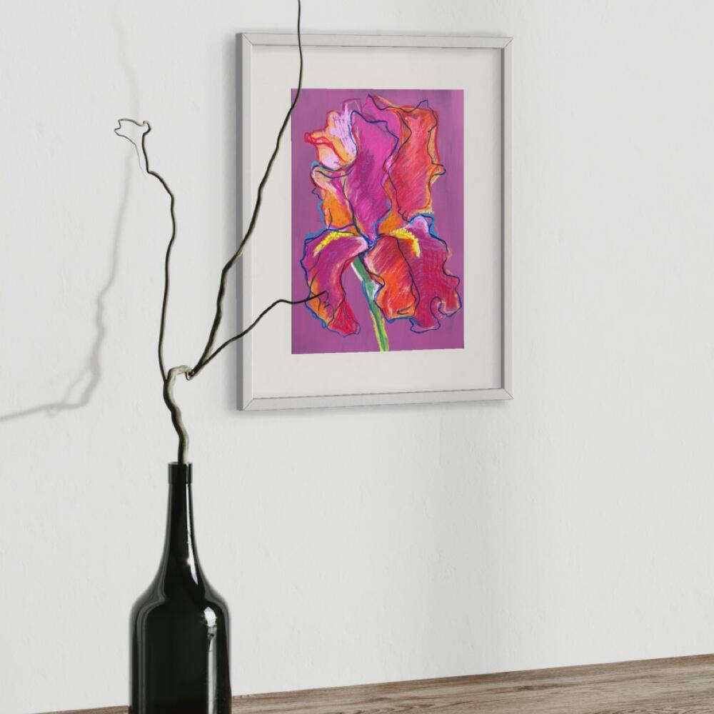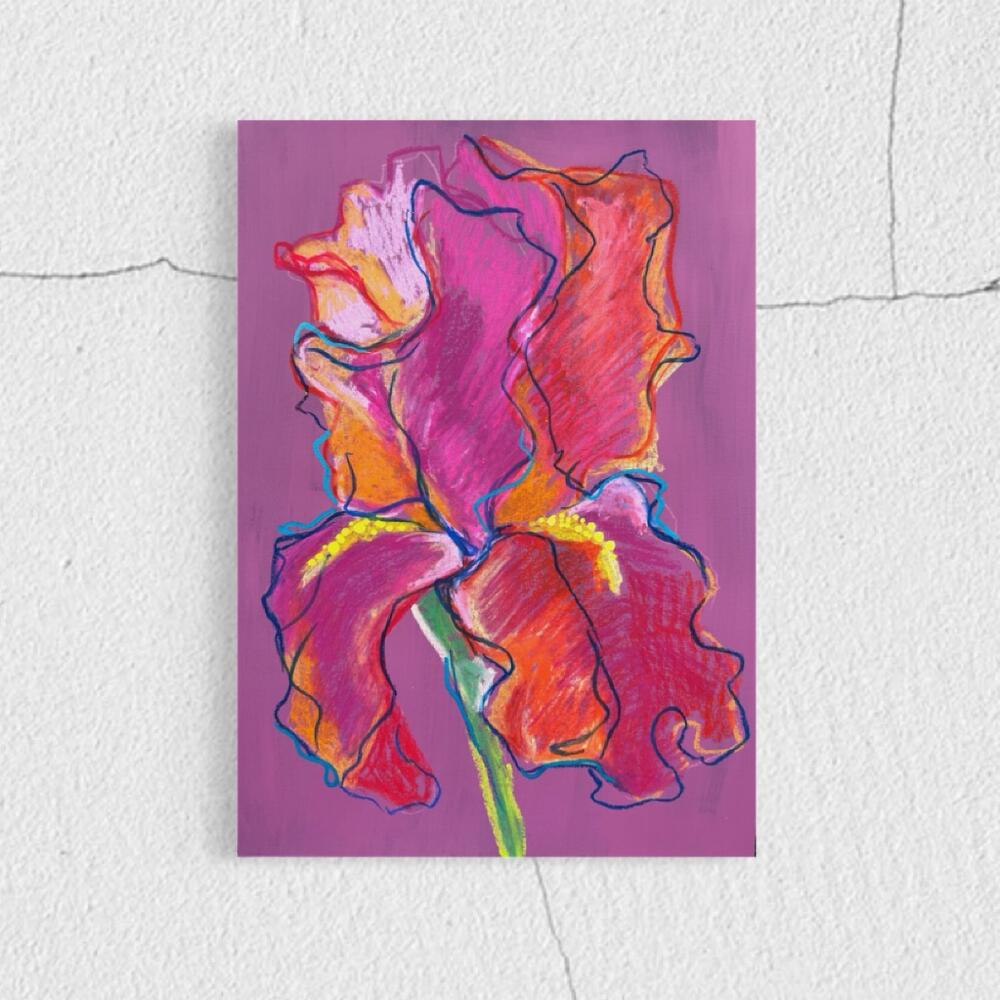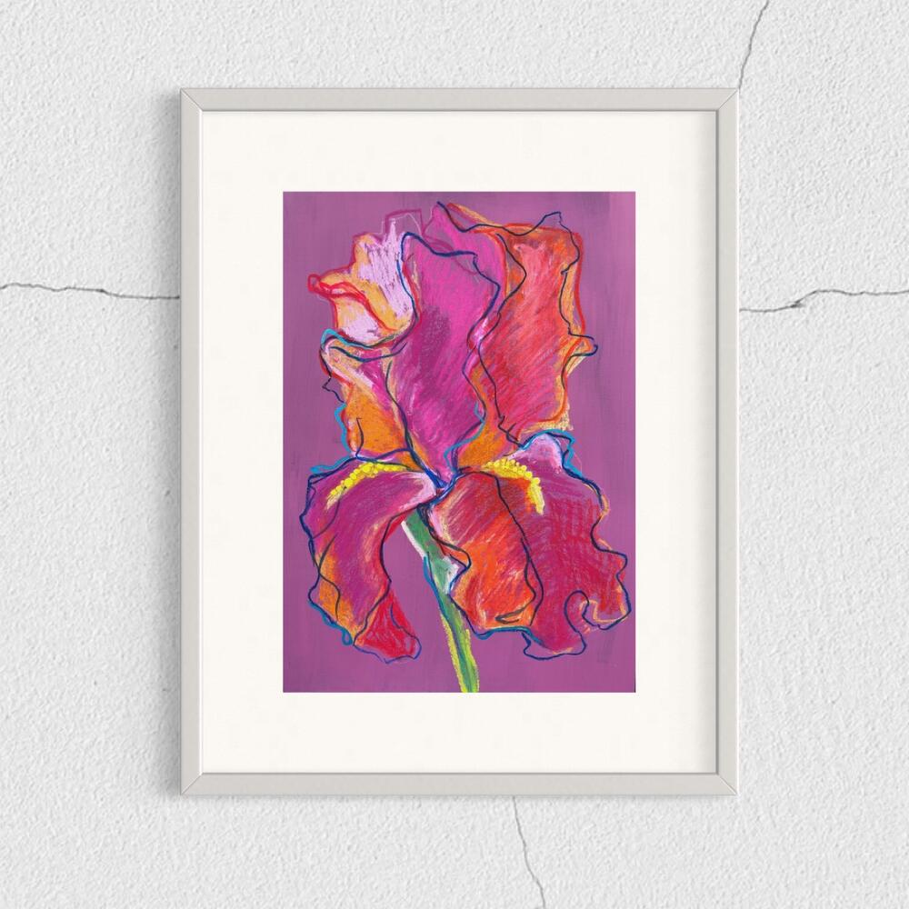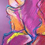 Картина пастелью на бумаге формата А4. Без рамы. Возможно оформление в белую рамку с паспарту 40х30 см. Теплый, как закат, 2024. Масляная пастель, акрил, акриловые маркеры, бумага Fabriano 300 gsm. 29,7x21 см, размер изображения 27х19 см.