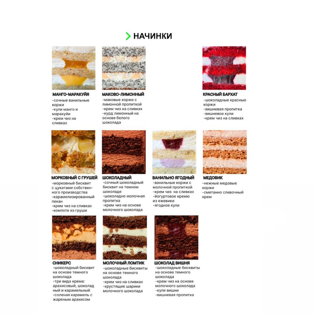 Сливочное масло 82,2%, мука, яйца, сливки 33%, белый шоколад, натуральный краситель, сахар, экстракт ванили, мастика Возможны следы сои и Орехов