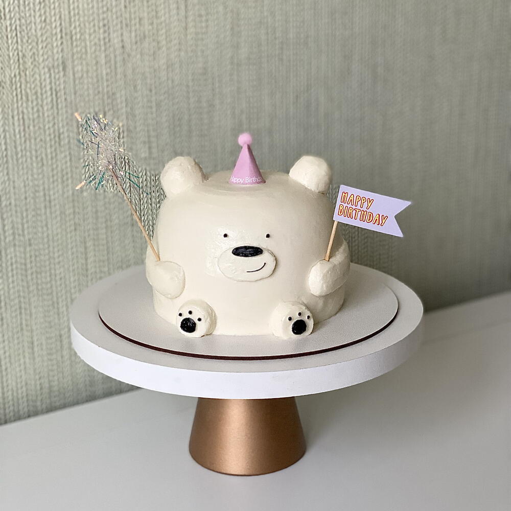 3д торт мишка на день рождения с розовым колпачком и надписью happy birthday, с двумя топперами