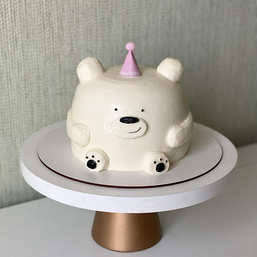 3д торт мишка на день рождения с розовым колпачком с надписью happy birthday