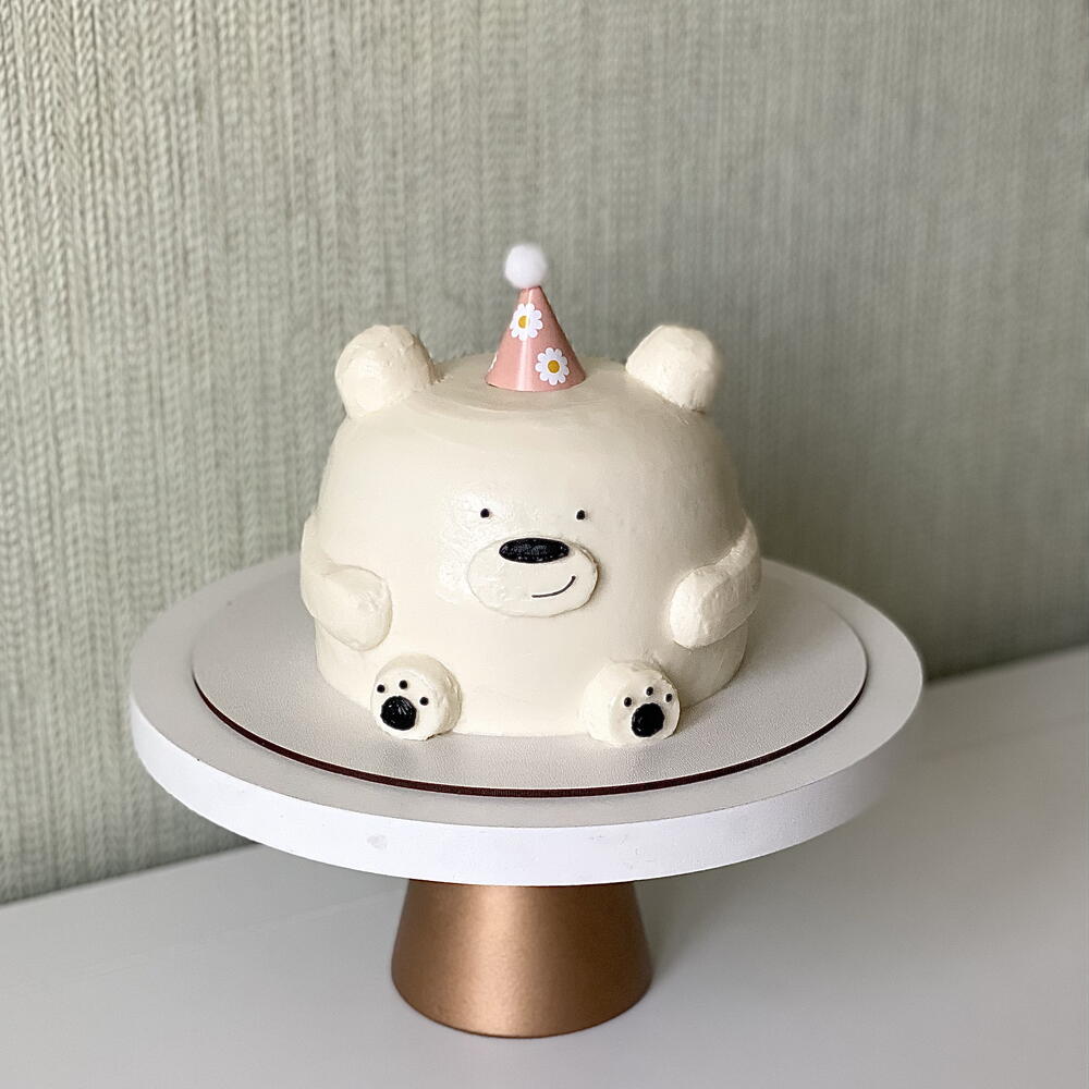 3д торт мишка на день рождения с розовым колпачком с цветочным изображением