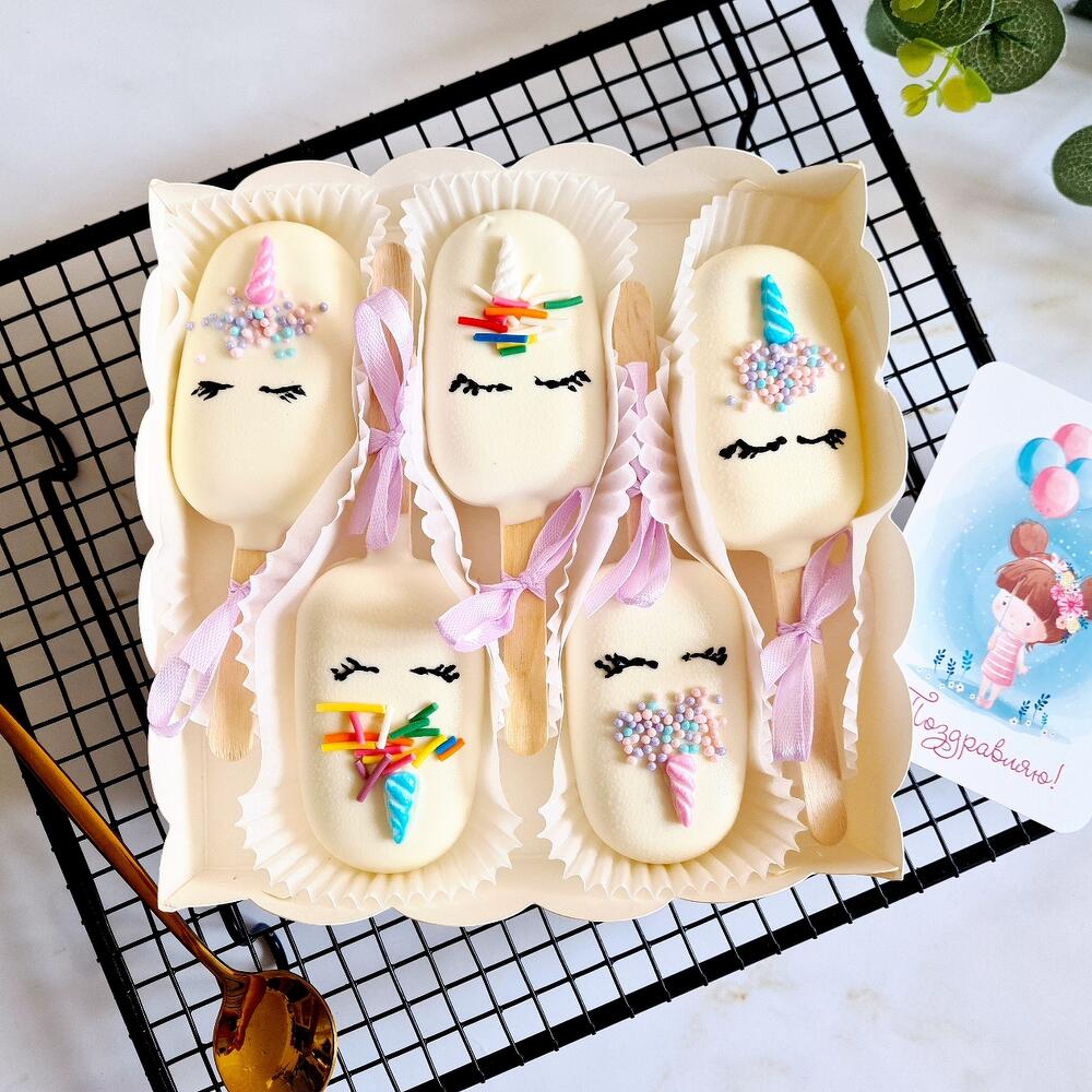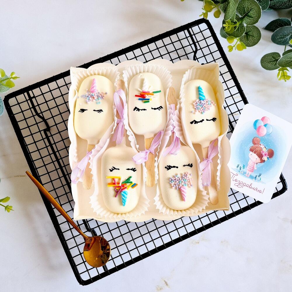 Ассорти чизкейков "Единорог" в белом шоколаде ( вишня-шоколад, клубника, рафаелло, черная смородина , манго-маракуйя)