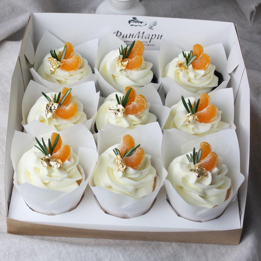 Большая коробка капкейков с мандарином