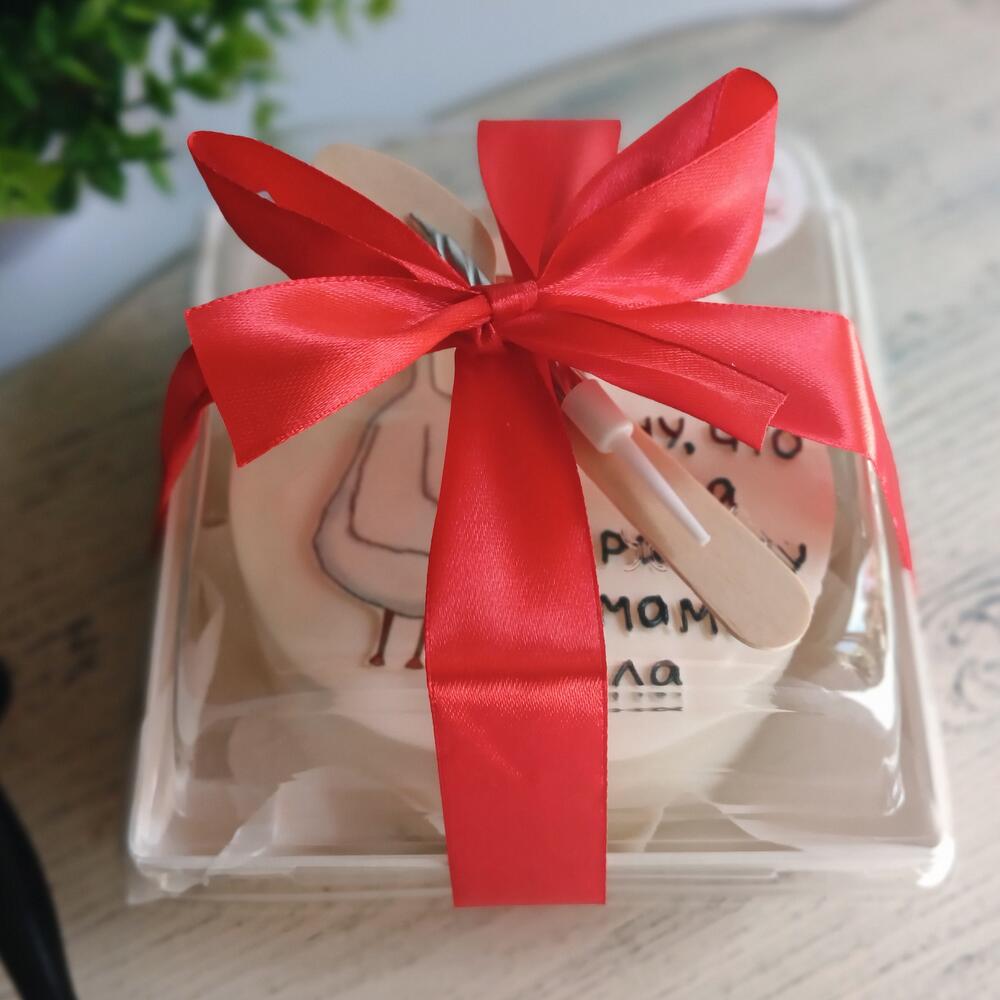 Бенто-торт - это маленькое кондитерское изделие. Его удобно взять с собой куда угодно: на обед, на пикник, на работу и даже в дорогу. Бенто-торт - это приятный и неожиданный сюрприз, который можно сделать любимому человеку в любой обстановке. Делаем кремом не сложные рисунки и надписи. Если требуется более сложный дизайн, предлагаем бенто с печатью на сахарной бумаге. Такой торт можно оформить в другой карточке товара. Смотрите в нашем каталоге. Начинку можно выбрать из следующих вариантов: 1. ваниль-клубника (ванильный бисквит, молочная пропитка, конфи из клубники, сливочный крем-чиз). 2. ваниль-карамель (ванильный бисквит, молочная пропитка, карамель, сливочный крем-чиз). 3. ваниль-вишня (ванильный бисквит, молочная пропитка, вишнёвое конфи, сливочный крем-чиз). 4. шоколад-карамель-арахис (шоколадный бисквит, молочная пропитка, карамель, арахис обжаренный, сливочный крем-чиз). 5. шоколад-вишня (шоколадный бисквит, молочная пропитка, вишневое конфи, сливочный крем-чиз). 6. шоколад-клубника (шоколадный бисквит, молочная пропитка, клубничное конфи, сливочный крем-чиз). 7. шоколад-карамель (шоколадный бисквит, молочная пропитка, карамель, сливочный крем-чиз). Указывайте в комментариях желаемую начинку и уточнения по оформлению. По умолчанию делаем бенто-торты с начинкой Ваниль-клубника. Упаковка в коробку с прозрачной крышкой, перевязанную атласной лентой. В комплекте к тортику идёт ложечка и свечка. Срок годности 48 часов в холодильнике.