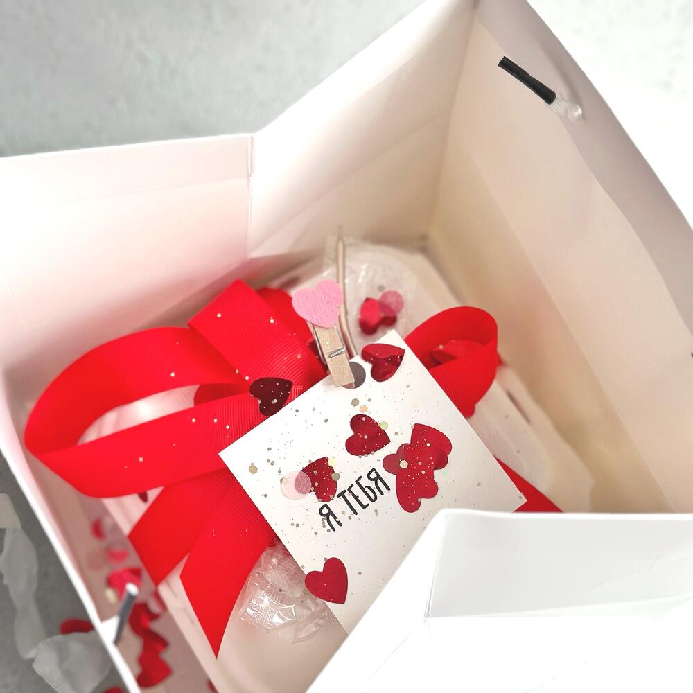 Бенто-торт признание в любви. В набор входит: классический бокс, красивая бумага, торт, посыпка-сердца, ложечка и свечка, красивая открытка.(открытки все разные в тематике 14 февраля). Начинку можно выбрать любую.