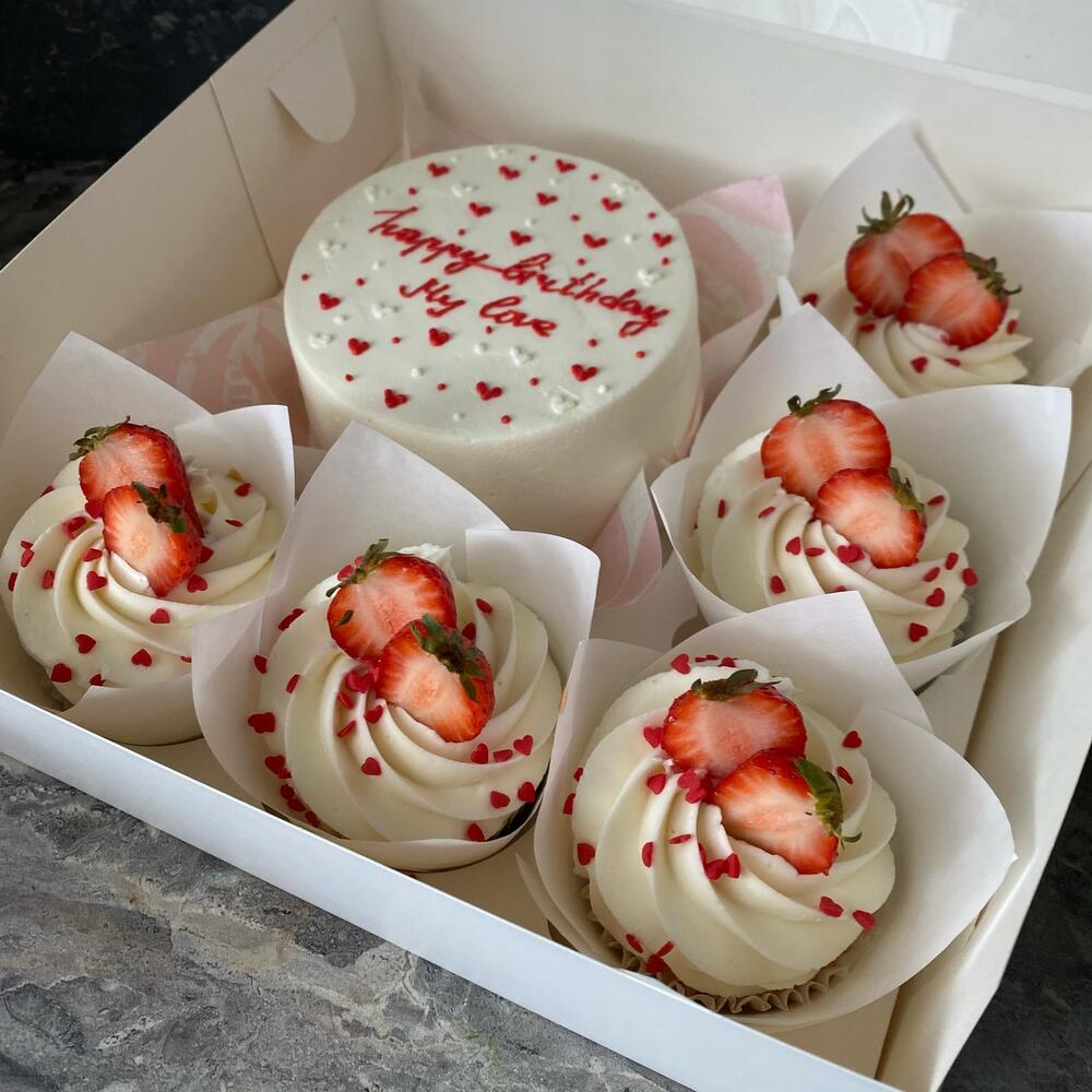 Возможные начинки для бенто тортика Панчо с ананасом и грецким орехом Морковный с солёной карамелью Сникерс Карамельно- банановый Шоколадно-вишневый Королева Виктория Шоколад солёная карамель Шоколад с чёрной смородиной Красный бархат с клубникой или малиной Ваниль с клубникой Крем шоколадный или сливочный Капкейки и тортик могут быть с разными начинками! Надпись тоже можем написать любую Обязательно напишите нам об этом в комментариях
