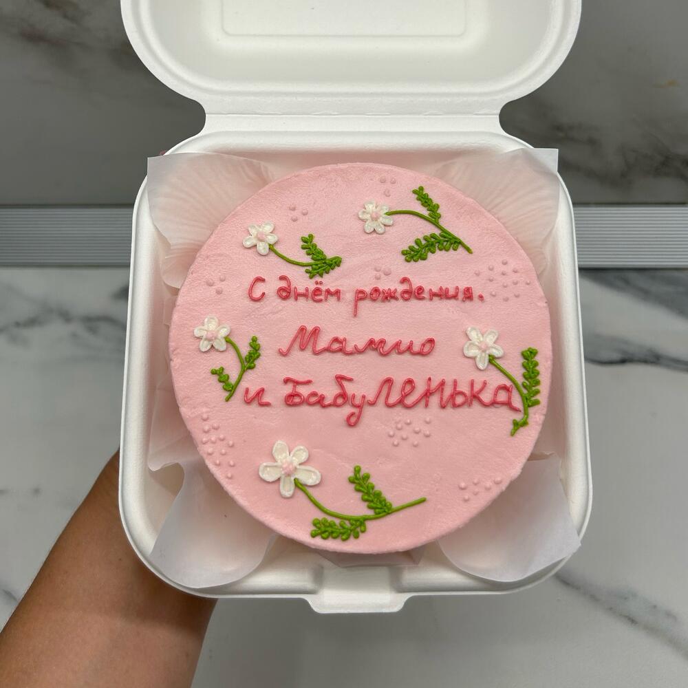 Нежный тортик для мамы в цветочном оформлении *возможно изменить цветовую гамму и надпись