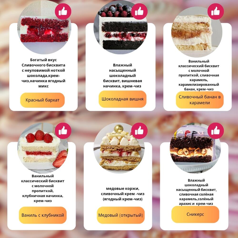 Выбирайте лучшее для вас и ваших любимых 🍰Подарите незабываемые моменты радости, красоты и богатого вкуса 🎂 ❤️Каждый кусочек наших десертов — маленькое чудо, созданное с любовью и вниманием к деталям❤️ 🎁 Порадуйте любимых и близких красивым и сладким подарком от нашей кондитерской и пусть ваш праздник станет по-настоящему волшебным❤️
