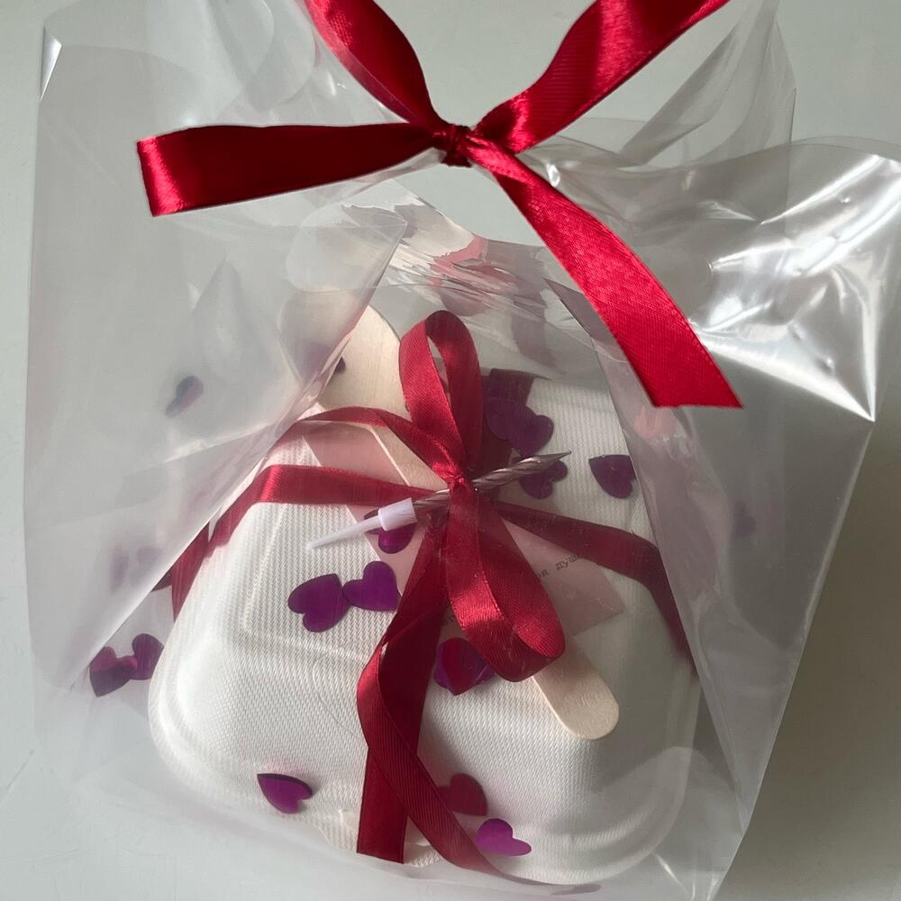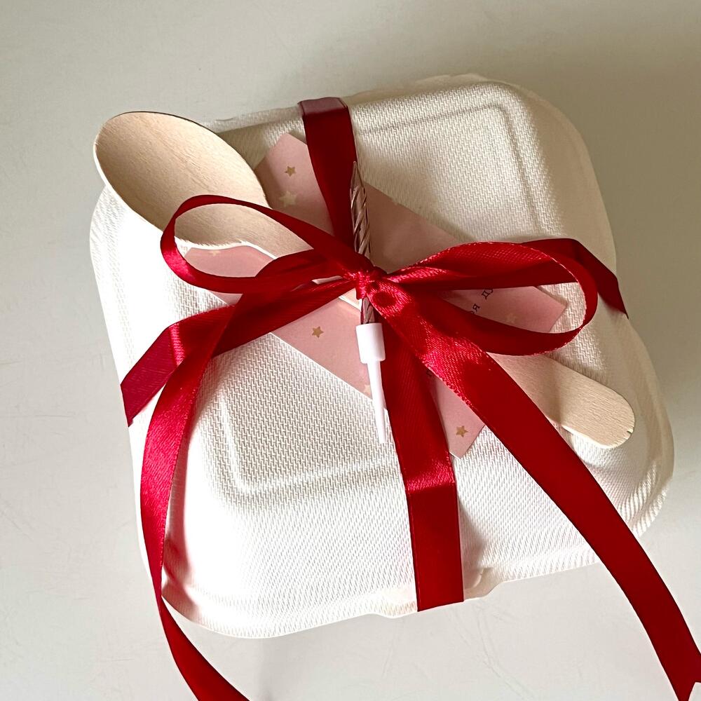 Порадуйте себя или любимого человека вкусным десертом и незабываемыми впечатлениями, заказав этот прекрасный бенто торт Начинку можно выбрать из ниже перечисленных, написав в комментарий к заказу (основной цвет торта так же можно выбрать другой): * клубника со сливками * вишня в шоколаде * сникерс По умолчанию идет «клубника со сливками», десерт рассчитан на 1-2 персон, идеально для вечера на двоих! *В упаковку входит: торт в боксе, свечка, деревянная ложка, лента, открытка, конфети, пакет. (Тюльпаны в комплект не входят)