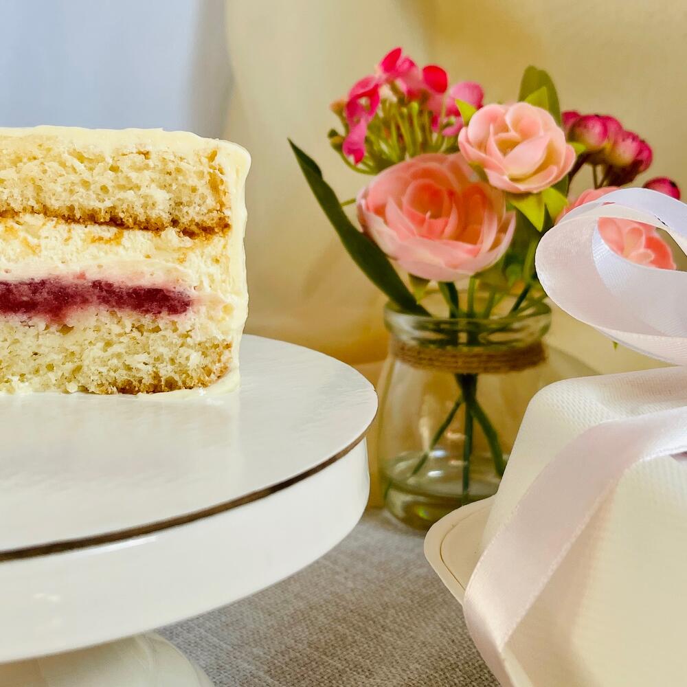 Ванильные влажные коржи, с кремом-чиз и клубничной прослойкой Бисквит: мука, яйца, сахар, масло растительное подсолнечное рафинированое, молоко, ванильный сахар с натуральной ванилью, разрыхлитель, соль. Начинка: клубника, сахар, кукурузный крахмал, желатин. Крем: сыр творожный БЗМЖ, сливки 33% БЗМЖ, сахарная пудра, красители пищевые.
