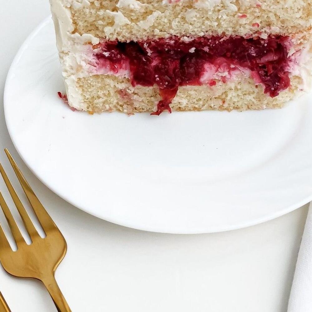 Начинка сливочная клубника: Яйца, соль, мука, разрыхлитель, растительное масло, клубничное пюре, малиновое пюре, сахар, пектин, творожный сыр, сливки, сахарная пудра, ванилин, краситель.