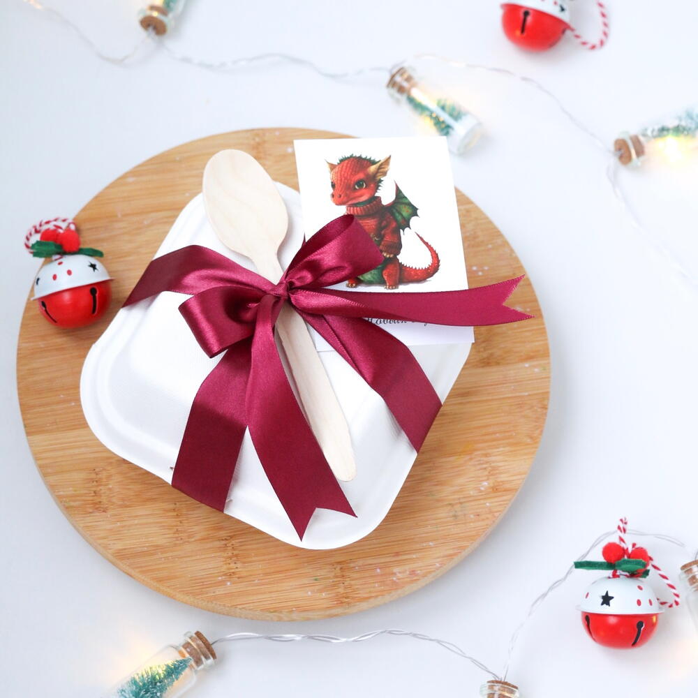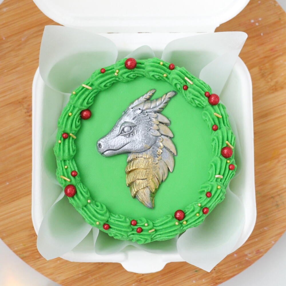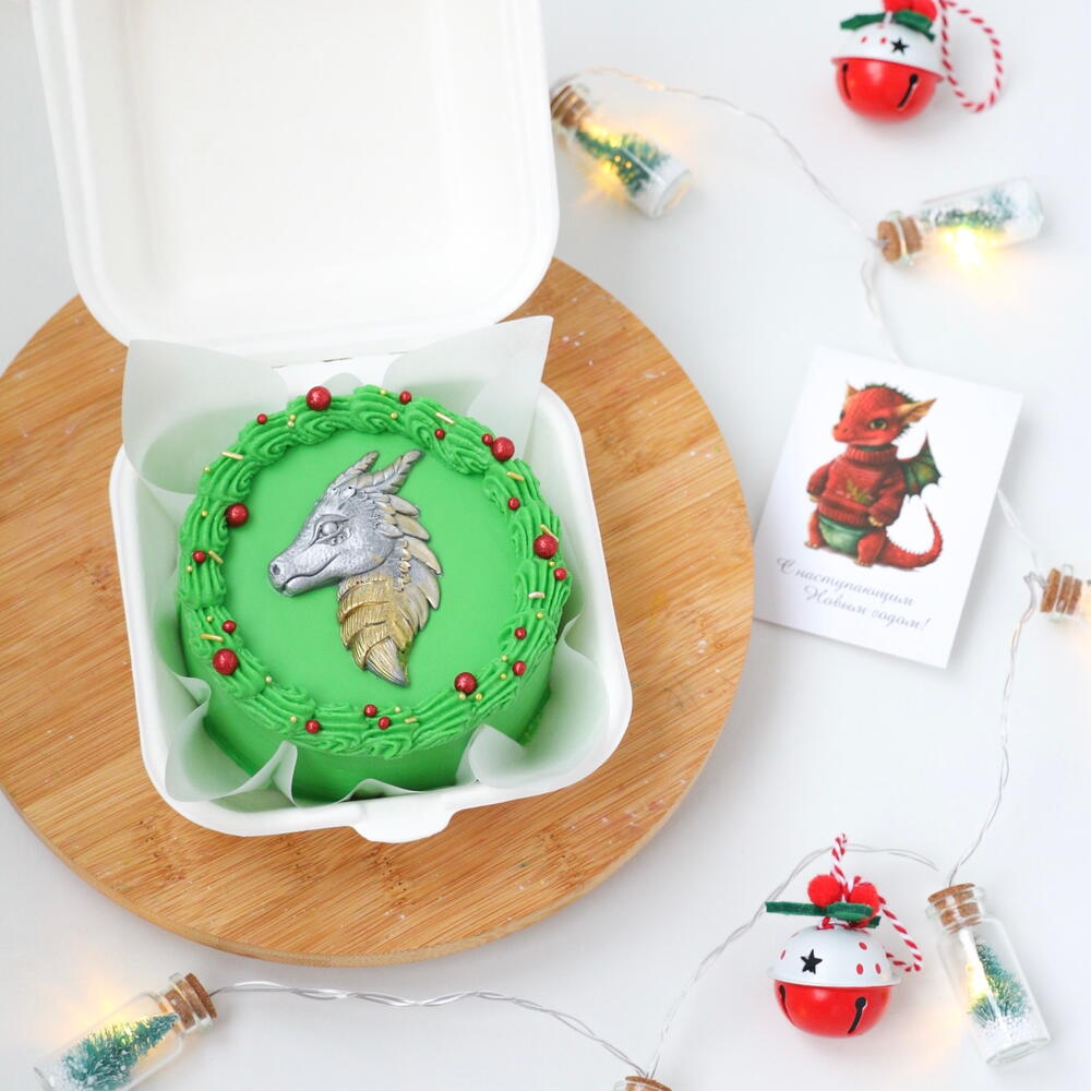 Тортик рассчитан на 1-3 человек. Укажите начинку при оформлении заказа. Начинки: -Красный бархат(бисквит красный бархат, сливочный крем и малиновая начинка) -Сникерс (нежный шоколадный бисквит, соленая карамель с арахисом, крем-чиз) -Молочный ломтик (шоколадные бисквиты и воздушный крем с маскарпоне) -Малиновый йогурт (ванильный бисквит с нотками цитруса и малиново-йогуртовый крем) -Ваниль-клубника (нежные ванильные бисквиты, клубничная начинка, сливочный крем) Тортик украшен шоколадной фигуркой-драконом и посыпкой из дутого риса. В комплекте также идут деревянная ложечка, открытка и свечка при необходимости.