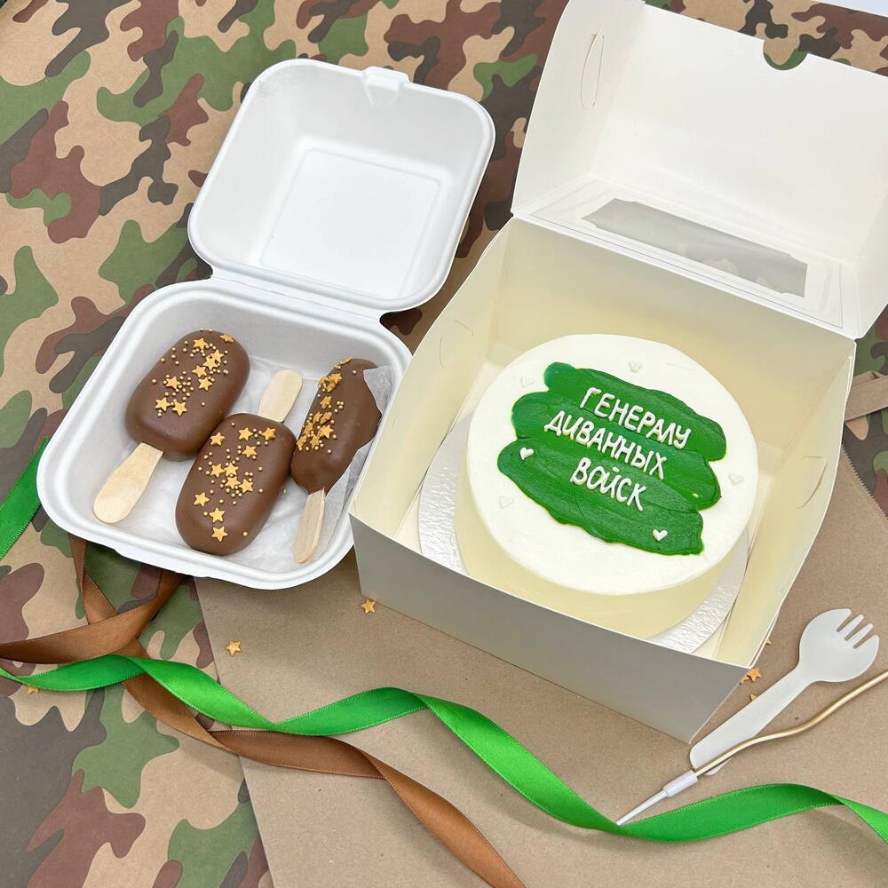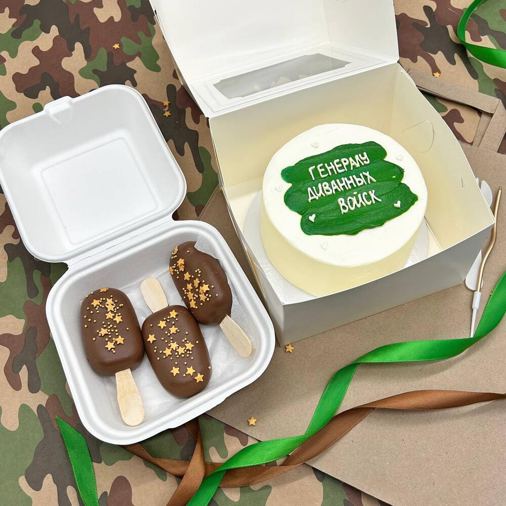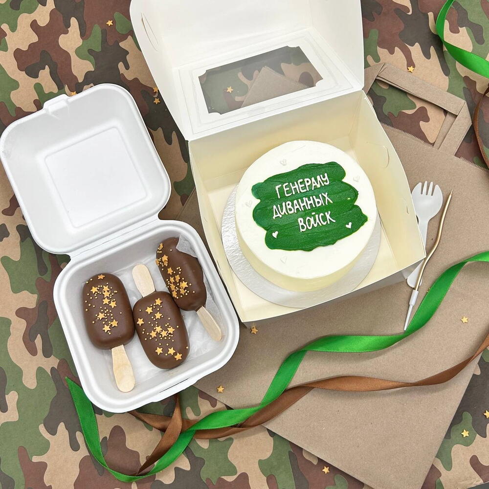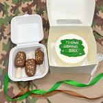 Бенто торт "Генералу диванных войск" и пирожные Картошка папе, мужу, дедушке