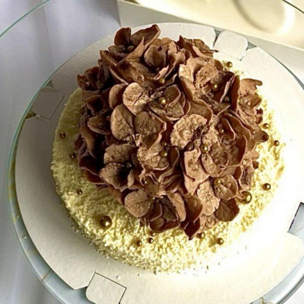 Муссовый Бенто - Торты в форме цветка Гортензии ! Муссовый цветок: Гортензия на молочном бельгийском шоколаде с начинкой из черной смородины и Муссовый нижний слой Муссна белом бельгийском шоколаде с начинкой из манго . В декоре мягкие золотые шарики и посыпка из белого бельгийского шоколада Gallebaut