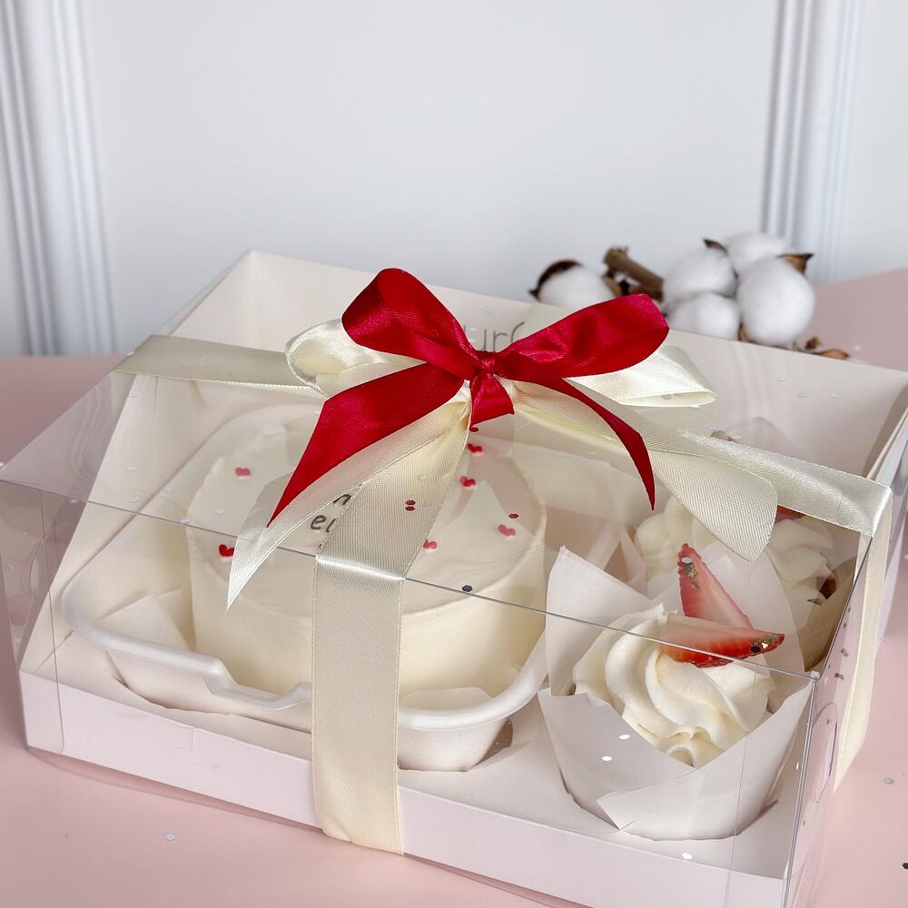 Ванильная ягода : нежные ванильные коржи ,молочная пропитка ,сливочный крем и яркая клубника 🍓 Шоколад-карамель-арахис : сочный шоколадный бисквит, шоколадная пропитка ,арахис с сливочной соленой карамелью, нежный крем 🥜 По умолчанию начинка - Ванильная ягода🍓 В комплекте: -ложечка -свечка -блестки -крафтовый пакет Открытку можно подписать по вашим пожеланиям!🥰
