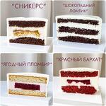 Состав: «Красный бархат» - сахар, яйцо, мука, разрыхлитель, какао, масло растительное, кефир, сода, гелевый краситель красный, соль, вишня, крахмал кукурузный, сливки нормализованные 33%, желатин, сыр творожный, пищевой краситель, сахарная пудра «Ягодный пломбир» - мука, разрыхлитель, кукурузный крахмал, сахар, яйцо С0, молоко, масло сливочное 82,5%, пюре ягодное без косточек, сливки нормализованные 33%, сахарная пудра, маскарпоне (сливки нормализованные пастеризованные, регулятор кислотности молочная кислота), желатин, замороженные ягоды, пектин цитрусовый, сыр творожный, пищевой краситель. «Сникерс» - яйцо С0, сахар, мука, какао-порошок, разрыхлитель, растительное масло, сода, вода, творожный сыр, сливки нормализованные 33%, сироп глюкозы, желатин, сахарная пудра, арахис, арахисовая паста (обжаренный арахис, сахар, растительные масла (хлопковое, рапсовое, соевое, соль), сливочное масло 82,5 %, пищевой краситель. «Молочный ломтик» - яйцо С0, Сахар, мука, разрыхлитель, сода, какао-порошок, молоко, растительное масло, мёд, маскарпоне (сливки нормализованные пастеризованные, регулятор кислотности молочная кислота), сливки нормализованные 33%, сгущенное молоко ( цельное молоко, обезжиренное молоко, сахар ( сахароза, лактоза)), желатин, сахарная пудра, сыр творожный, пищевой краситель. Внимание : на тортах присутствует сахарная печать полностью съедобная!