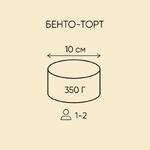 Бенто-торт 350 г на 1-2 персоны с начинкой на ваш выбор. Выберите вкус торта и напишите, при необходимости, в чат. В составе указан вкус Медовик. Бенто-торт заворачивается с торцов в пергамент и упаковывается в коробку.