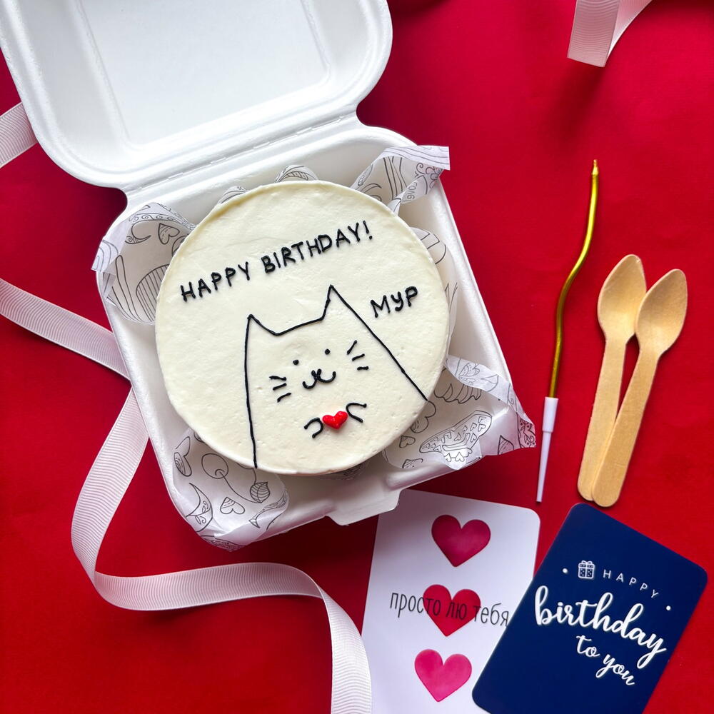 Бенто торт на день рождения с котиком любимой, любимому, мужу, жене, подруге девушке, молодому человеку, сестре, брату