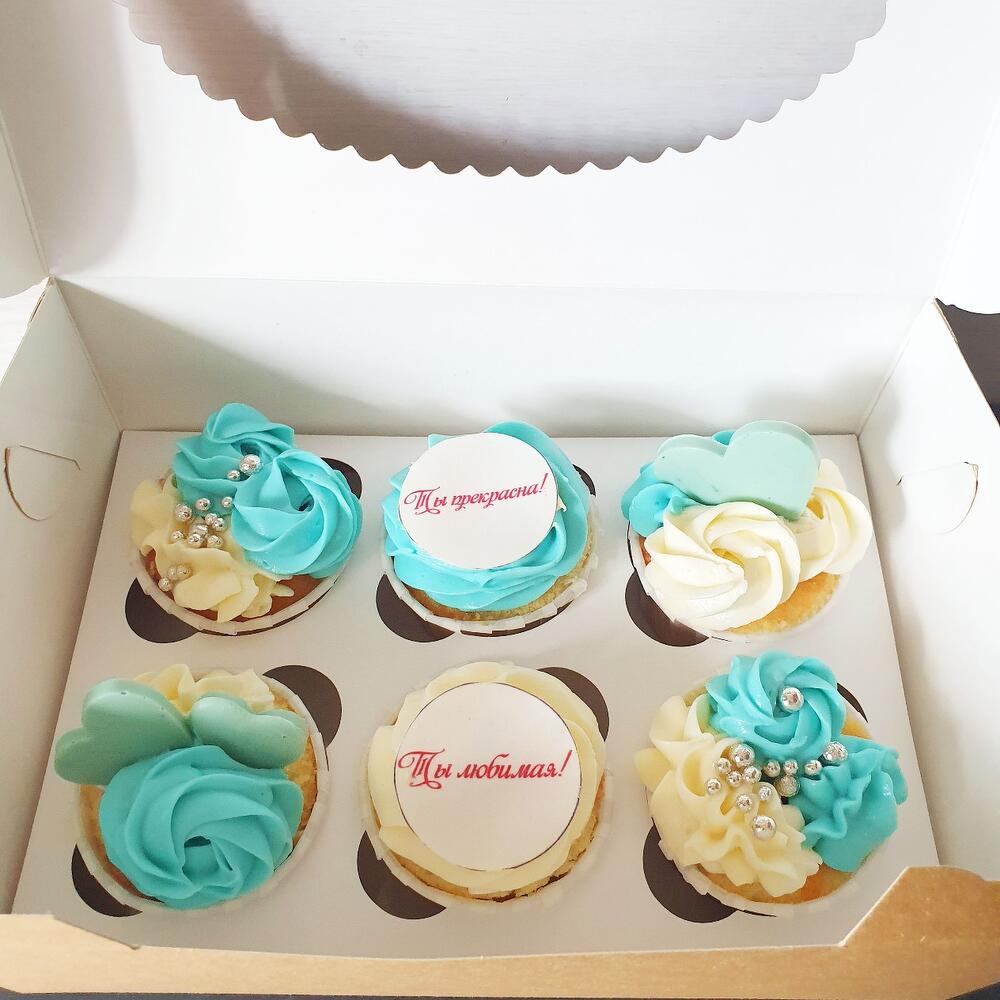 Капкейки 6 шт с нежным кремом чиз и декором. По умолчанию капкейки с клубничной начинкой) Идеальны для праздника и отличного настроения)) Капкейки ванильные или шоколадные на выбор. Цвет крема можно сделать любой. Напишите пожалуйста в комментариях, какие капкейки выбрали (ваниль или шоколад) и начинку.