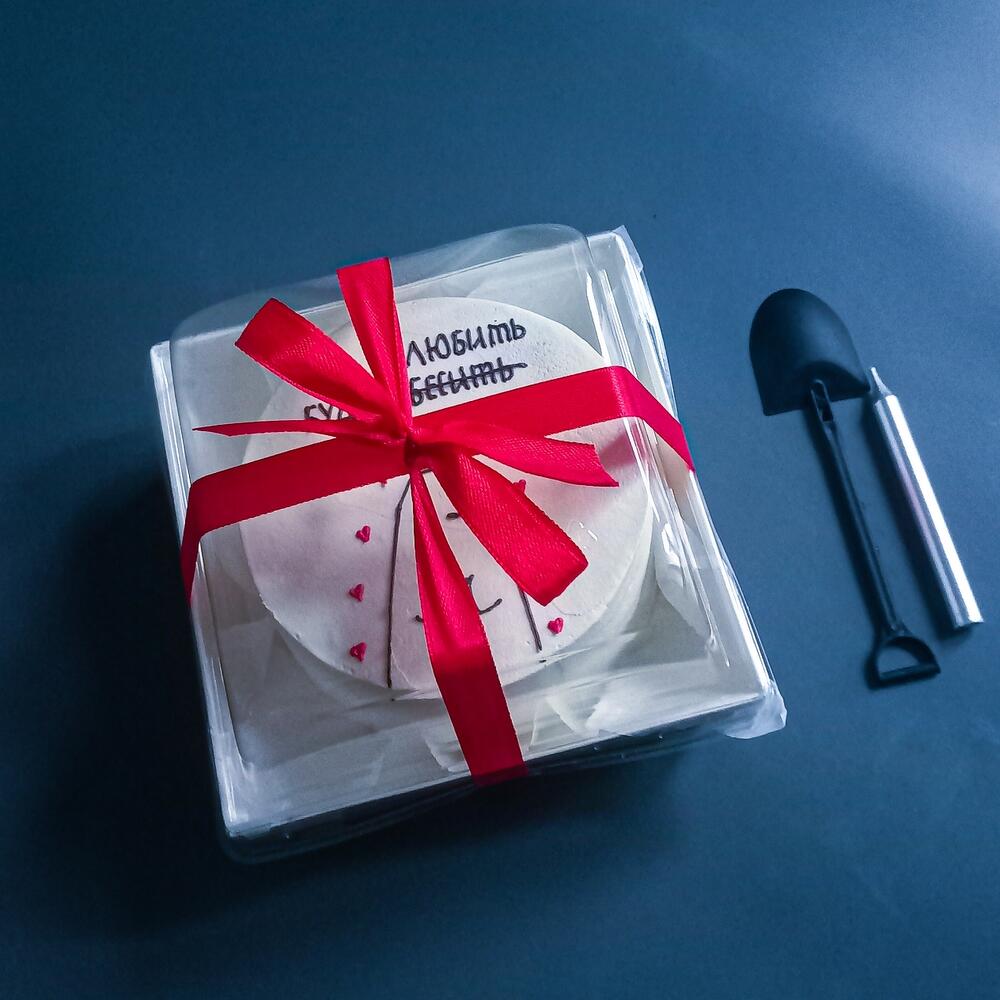 В комплекте: Тортик в стильном ланч-боксе с прозрачной крышкой. Оригинальная стильная пластиковая лопатка черного цвета. Свечка , высотой 12 см. Пакет Крафт. И любовь кондитера ❤️.