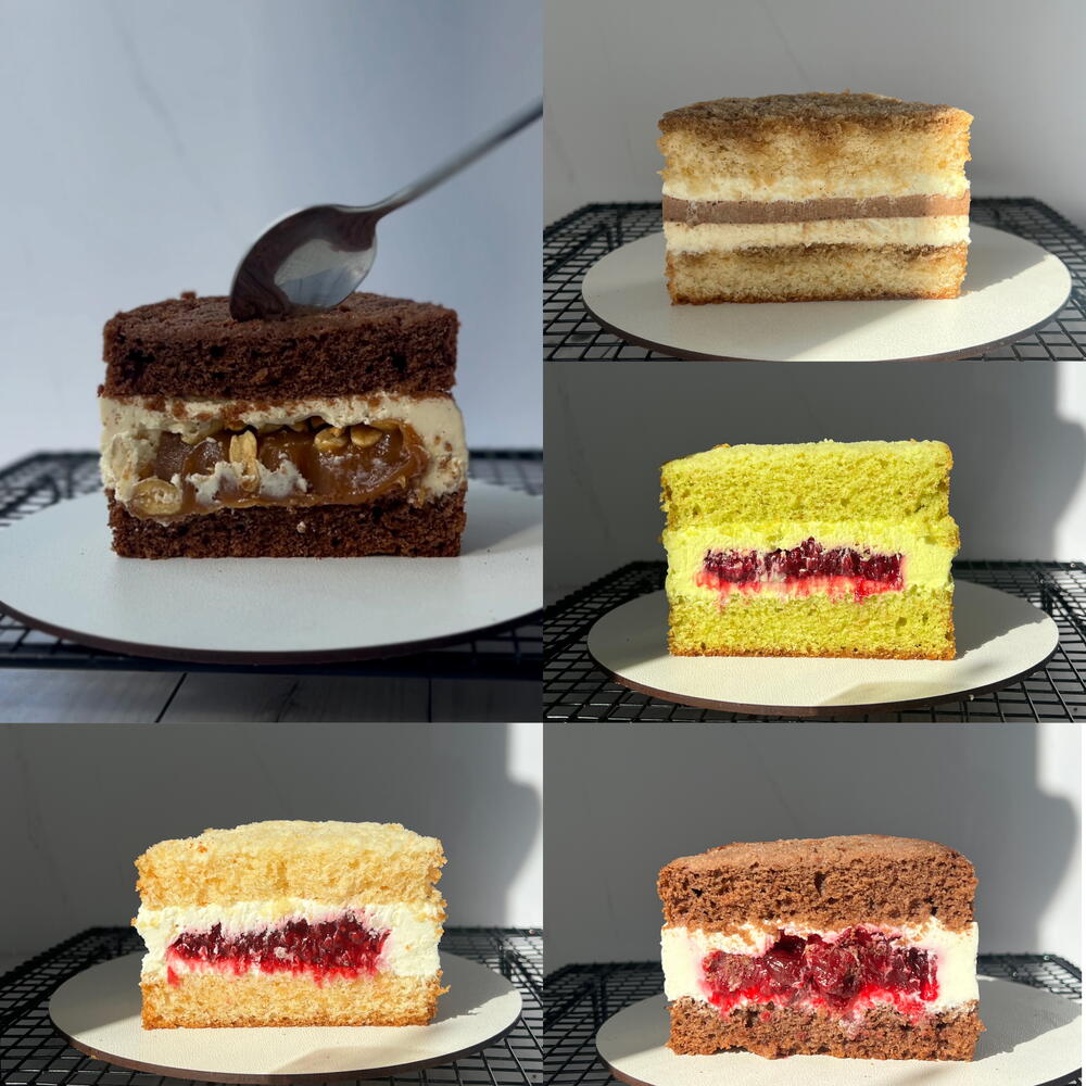 Ваниль малина или клубника : Мука, разрыхлитель, соль, Сахар, молоко, растительное масло, малина, пектин, творожный сыр, сливки, сахарная пудра, Сливочное масло Шоколад вишня: Мука, разрыхлитель, какао , соль, Сахар, молоко, растительное масло, вишня, пектин, творожный сыр, сливки, сахарная пудра, Сливочное масло Фисташка малина: Мука, разрыхлитель, соль, Сахар, молоко, растительное масло, фисташковая паста, малина, пектин, творожный сыр, сливки, сахарная пудра, Сливочное масло Сникерс: Мука, разрыхлитель, какао, соль, Сахар, молоко, растительное масло, арахисовая паста, творожный сыр, сливки, сахарная пудра, Сливочное масло, арахис