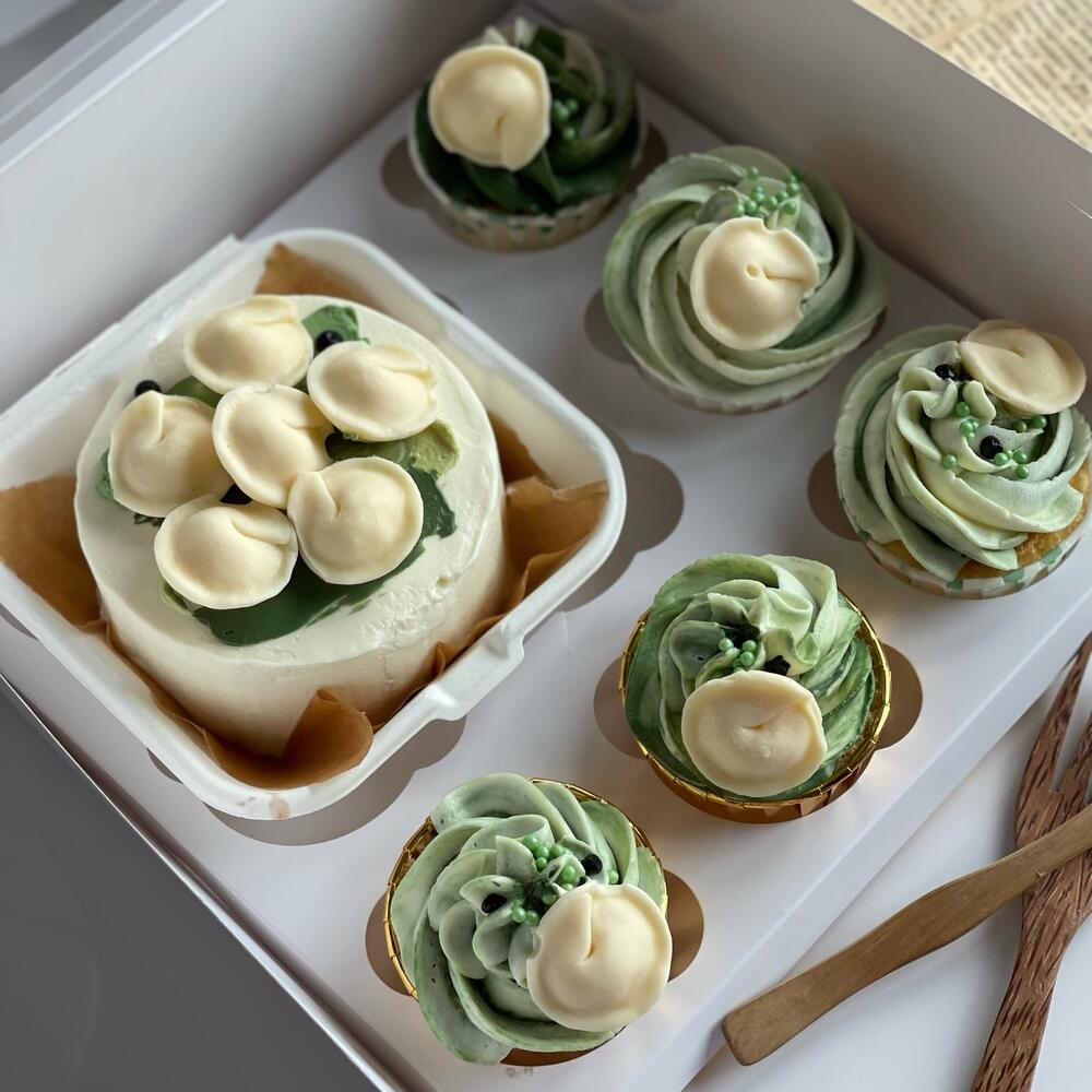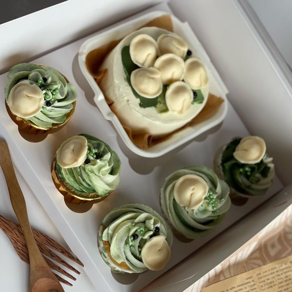 Бенто торт с пельменями и 5 капкейков в подарок на праздник