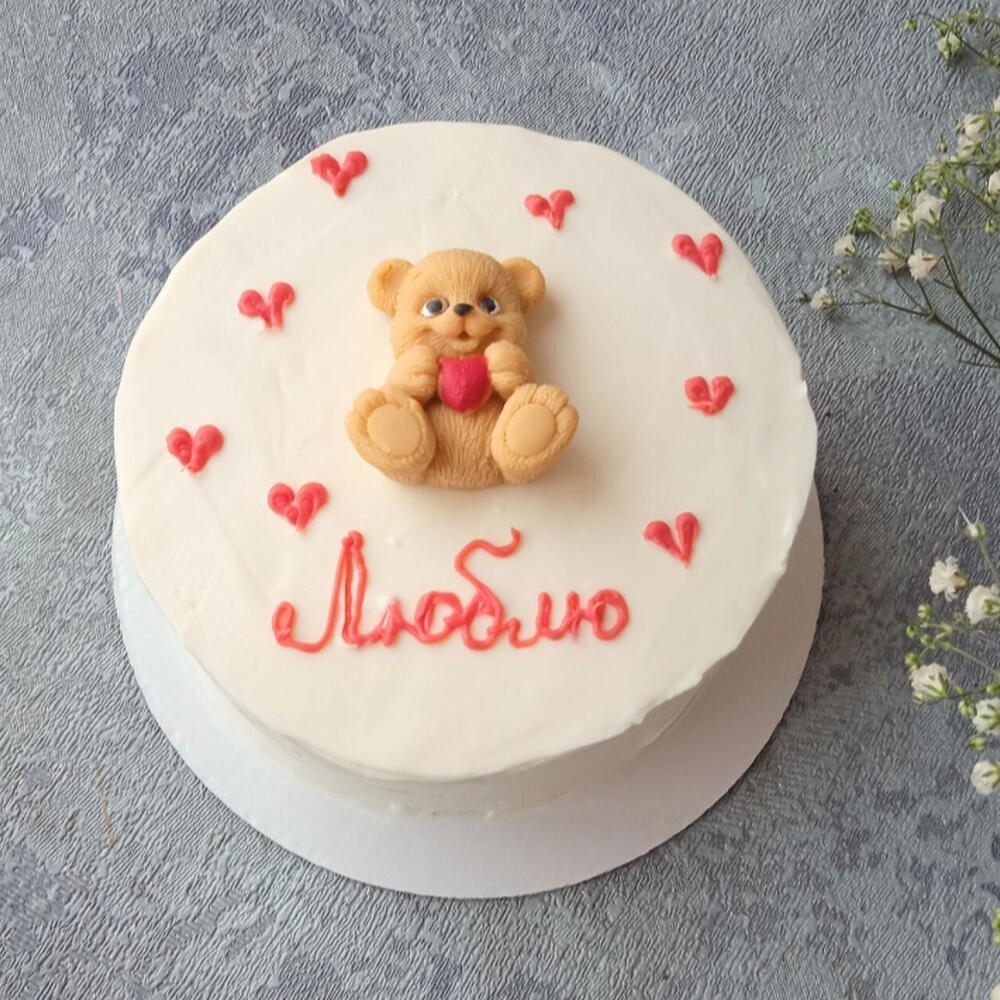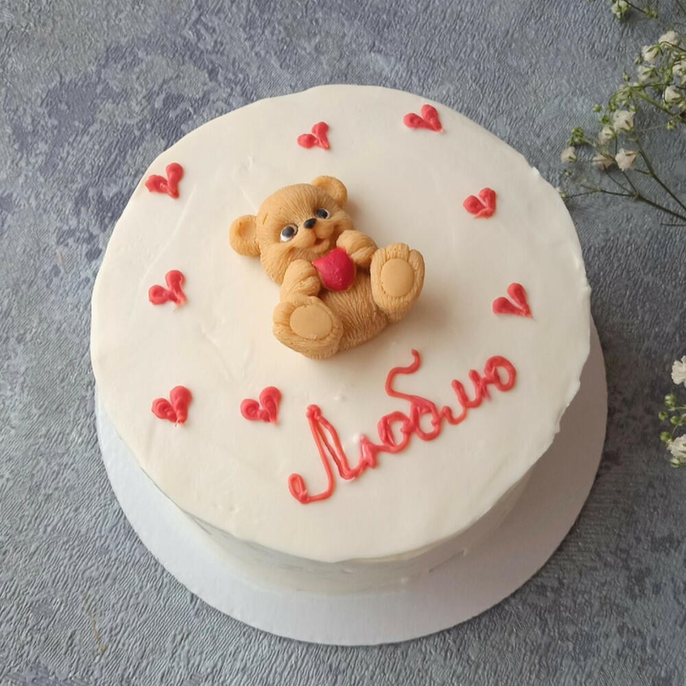 Бенто торт с шоколадным мишкой люблю - сладкий подарок для любимой, любимого на 14 февраля. Тортик на двоих. Срок годности - 48 часов. Хранить в холодильнике при температуре +4+6 градусов.