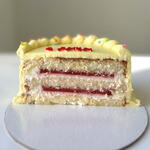 Ванильный бисквит с клубникой: пшеничная мука, сахар, яйца, молоко, клубничное пюре, творожный сыр, сливки, сахарная пудра, ванильная паста, разрыхлитель, пектин, соль Медовик: гречишный мёд, сахар, яйца, мука, сливочное масло, сметана, сливки, творожный сыр, сахарная пудра, соль, пищевая сода