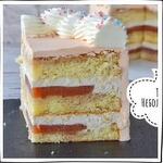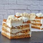 Карамельный медовик. (ЯйцоСО, Сахар, Мука, Разрыхлитель, Масло сливочное, мед гречишный, Сметана, творожный сыр, сливки 33%, желатин) Ягодный (ЯйцоСО, Сахар, Мука, Разрыхлитель, Масло сливочное, клубничное пюре, творожный сыр, сливки 33%, желатин