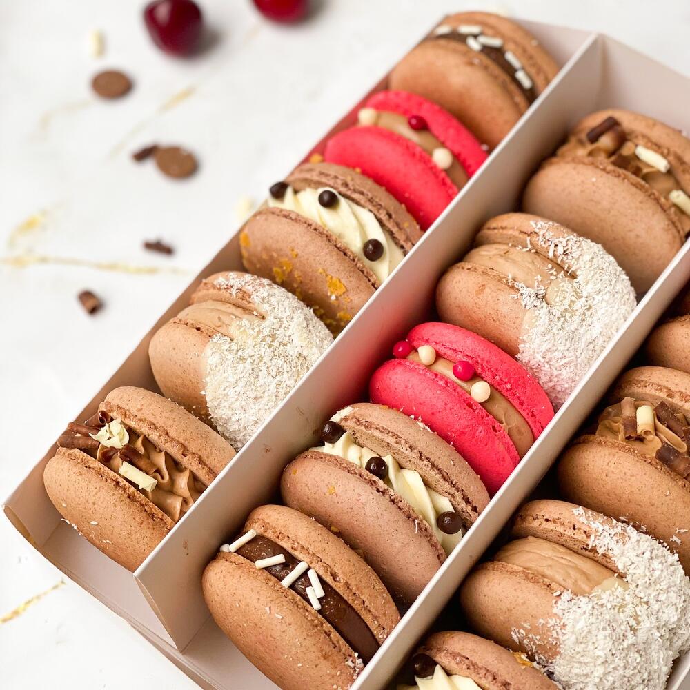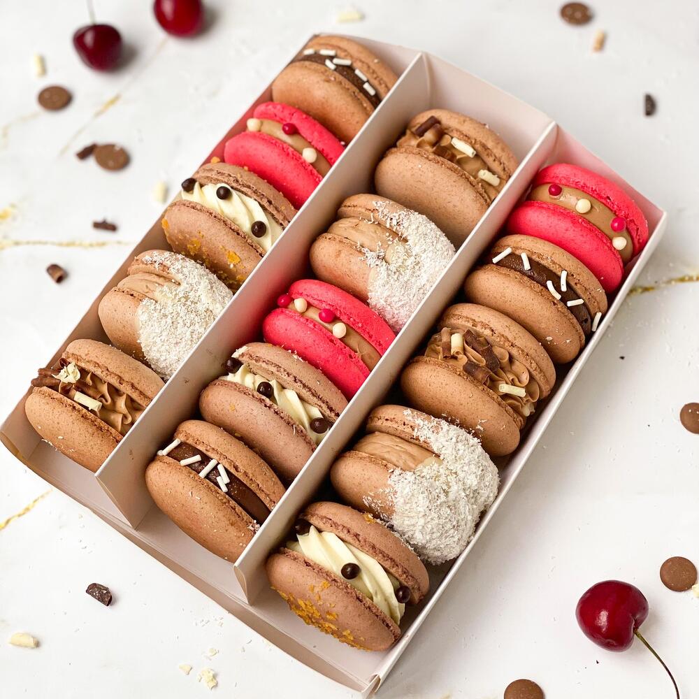 Коробочка макарон 15 штук ассорти из пяти шоколадных вкусов для любителей всего шоколадного 🍫 НЕ СОДЕРЖИТ Глютен. Макарон со вкусами: 🥥Баунти - 3 шт. 🍒Вишня в шоколаде - 3 шт. 🍸Бейлис - 3 шт. ☕️Латте-карамель - 3 шт. 🌰Шоколадный трюфель с ежевикой - 3 шт. Я готовлю большие макарон в которых МНОГО начинки 😍 🎁Красивая коробочка, яркая лента, открытка, праздничное конфетти и крафт-пакет уже включены в стоимость. Мы сделаем красивое оформление 👌 🔆Атласная лента, открытка и конфетти могут отличаться от представленных на фото. Если у Вас есть предпочтения по цветовой гамме – просто напишите в чате после оформлении заказа и я учту Ваши пожелания. ❗️Срок хранения 72 часа в холодильнике. Настоящие макарон, чтобы вам было вкусно 🌺