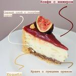 Сливочное масло, сахар, мука пшеничная, мука миндальная, крахмал кукурузный, соль, грецкие орехи, ваниль стручковая бурбонская, вафельная крошка, молочный шоколад, сливочный творожный сыр, яйца куриные, сливки, голубой сыр, пюре инжира, пюре малины, пектин NH