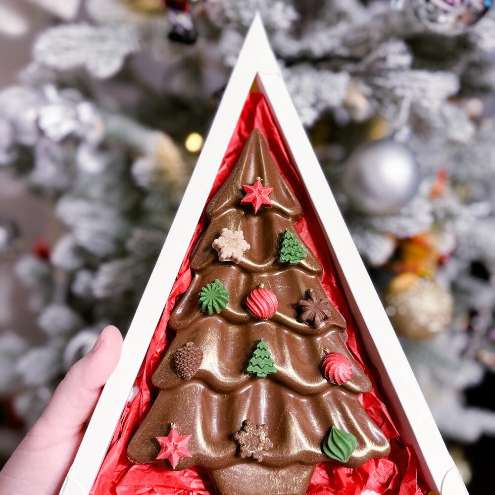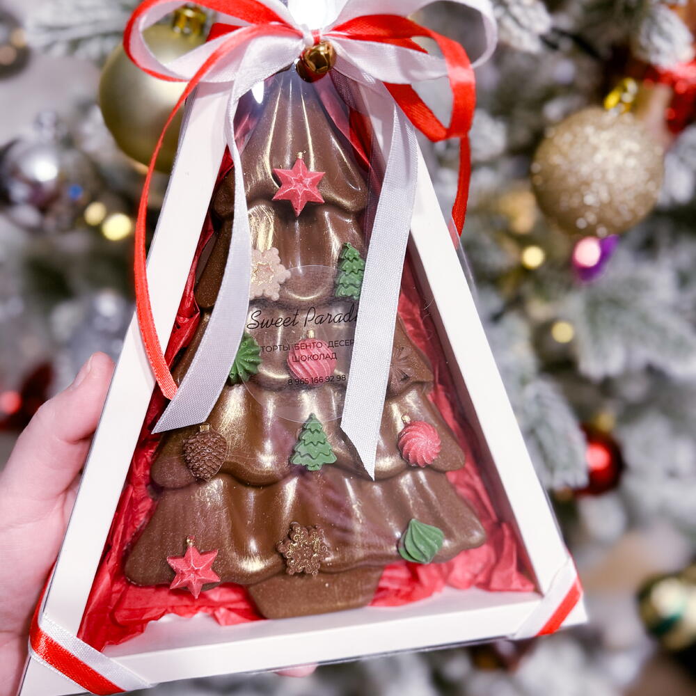Самый популярный и невероятно вкусный шоколад с Дунайской начинкой. А в виде Елочки отличный подарок на Новый год и Рождество. Оформлен в красивую коробку, бант и дополнен новогодней открыткой.