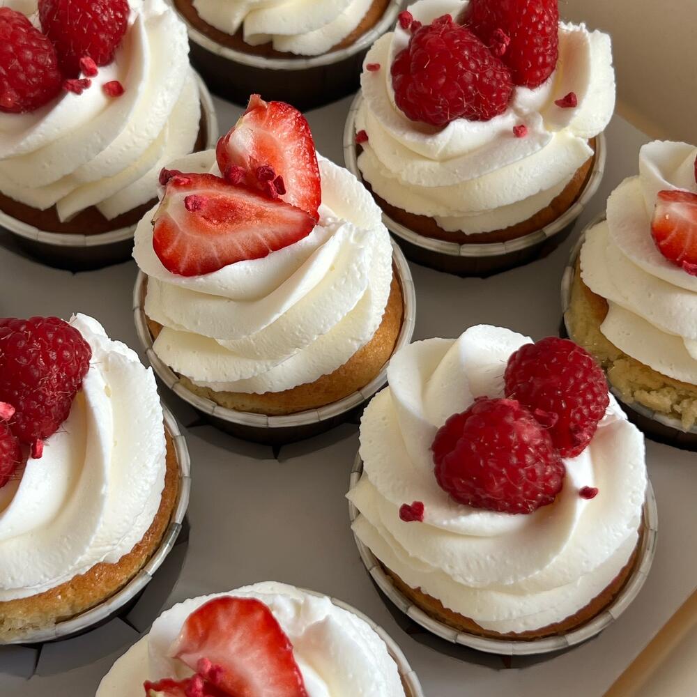 Капкейки - это нежный бисквит, ягодный конфитюр и сливочный крем. Этот десерт очень удобно есть, поэтому станет отличным подарком в офис, на детский праздник и просто к чаю✨ Хранить в холодильнике при +4-6 гр 72 часа