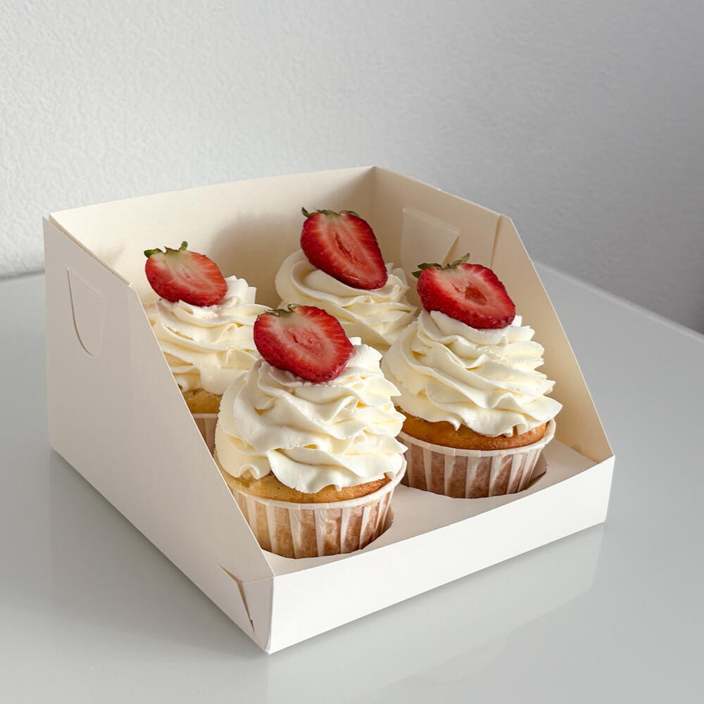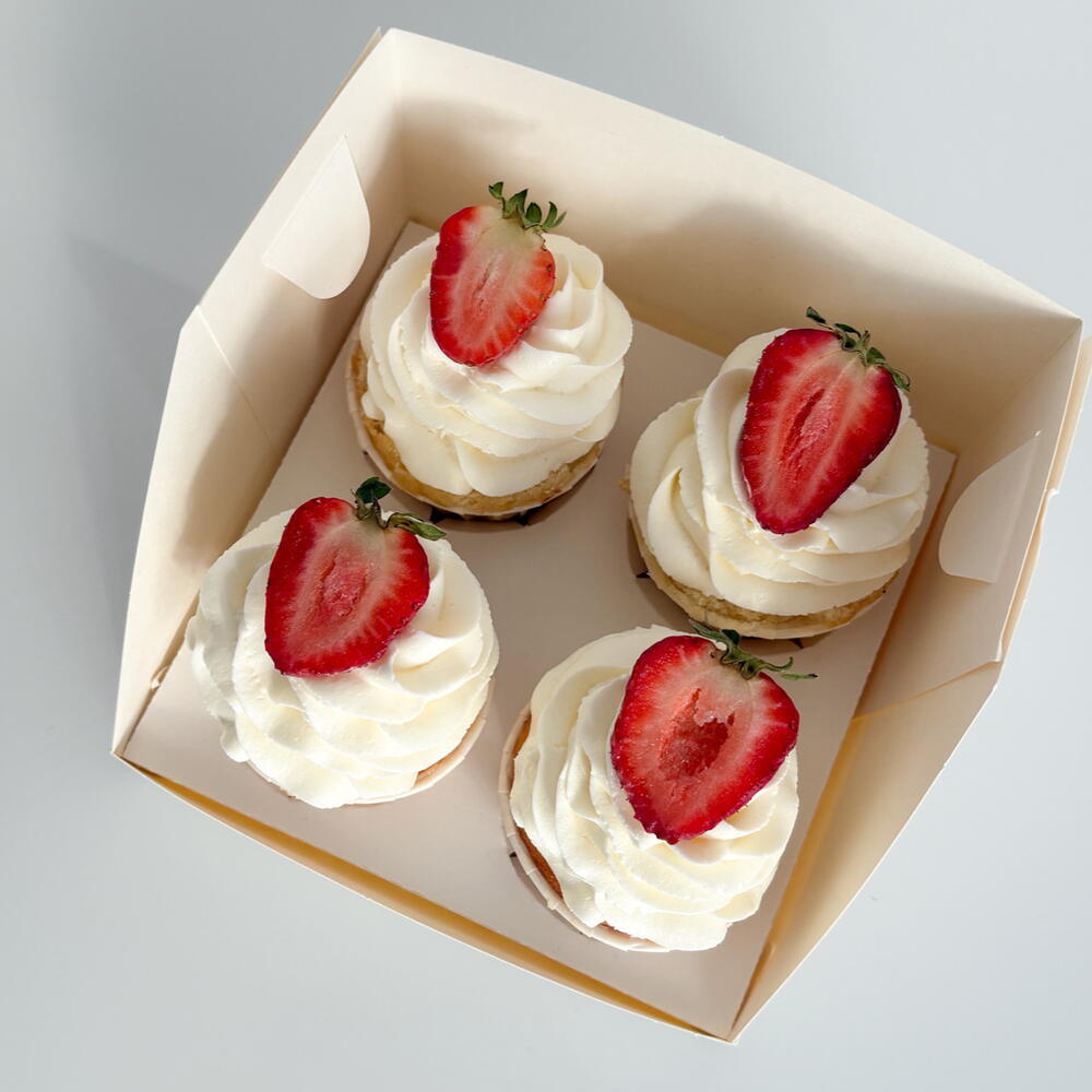 Капкейки с воздушной шапочкой из сливочного крем-чиза, украшенные клубникой🍓