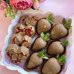 Свежая клубника 6 шт и гранат 4 шт в премиальном бельгийском шоколаде В стоимость входит: коробка, лента, пакет