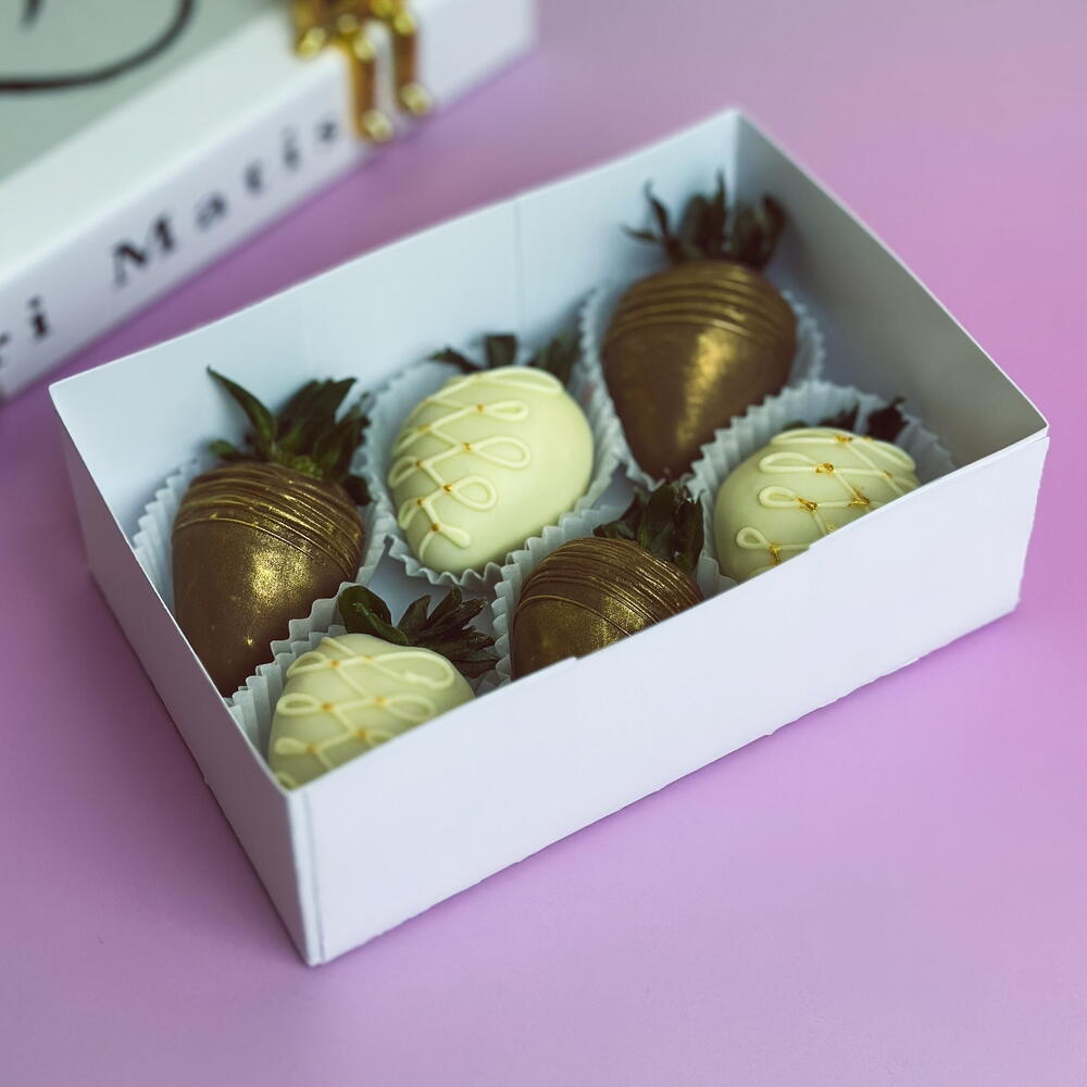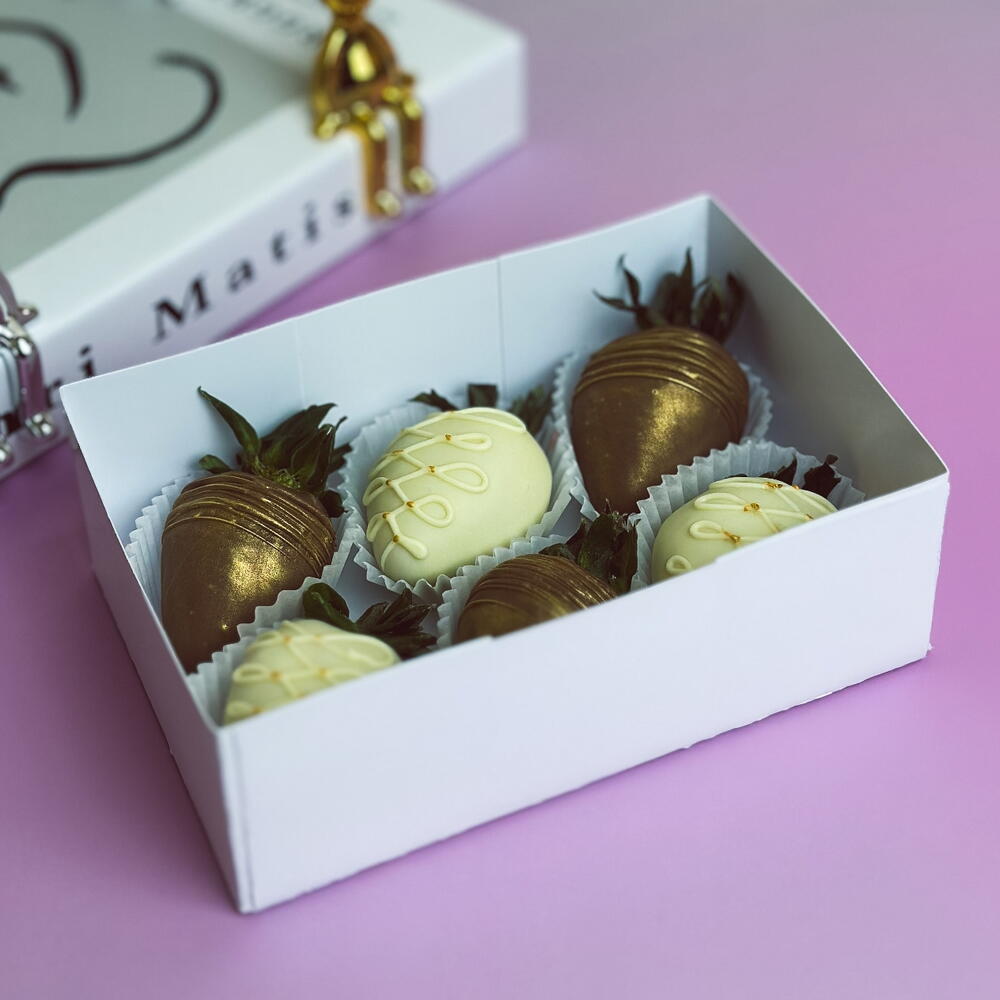 Набор клубники в белом и молочном бельгийском шоколаде с золотыми оттенками — настоящая находка для тех, кто ценит роскошь и качество. Нежные ягоды, покрытые благородным белым и кремовым шоколадом, украшены пищевым золотом, которое придает особую изысканность. Элегантные шоколадные узоры и рельефные украшения создают неповторимый визуальный эффект. Это идеальный подарок для любого случая, способный удивить даже самого требовательного гурмана.