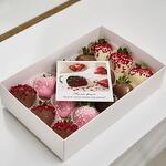 Свежая отборная клубника бельгийский молочный и белый шоколад (сахар, масло какао, молоко цельное сухое, какао тертое, сыворотка молочная сухая, жир молочный, эмульгатор (соевый лецитин), натуральный ароматизатор (ваниль)),бельгийский белый шоколад (сахар, масло какао, сухое цельное молоко, сухое обезжиренное молоко, молочный жир, эмульгатор (лецитины (соя)), натуральный ароматизатор (ваниль), сублимированная малина, пищевое золото, кокосовая стружка.