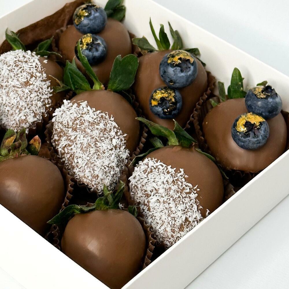 Клубникa в шоколаде 9 ягод с голубикой Premium