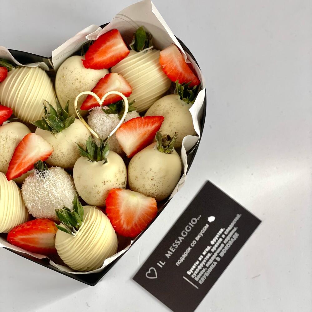 Для любителей белого шоколада🤍🖤 Лаконичная, вкусная, изысканная коробочка❤️ Срок годности клубники в шоколаде 24 часа в прохладном месте. Перед употреблением рекомендую подержать 15 минут при комнатной температуре. А лучше, наслаждаться сразу!) Так же, советую делать заказ на время, максимально приближенное ко времени дарения❤️ ВАЖНО: -Размер и плотность клубники зависит от сезона. Я выбираю для вас самое лучшее🫶🏻 -Я не работаю на потоке. Каждый заказ выполняется специально для Вас🌹 Со всей ответственностью, соблюдением санитарных норм и вниманием к деталям❤️ Любая коробочка/композиция собирается из свежих продуктов и готовится перед отправкой. -Доставка осуществляются сервисом Яндекс Go.
