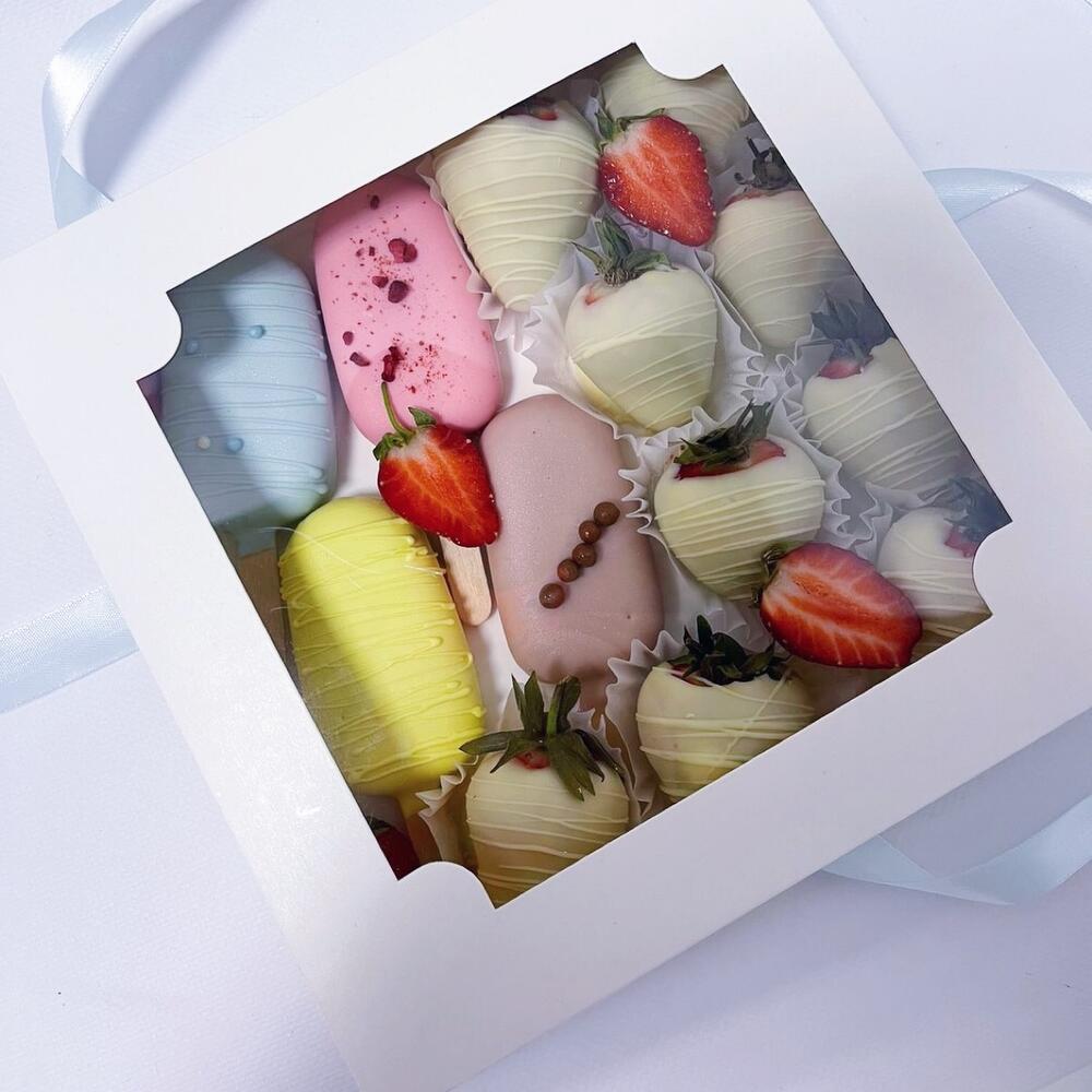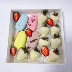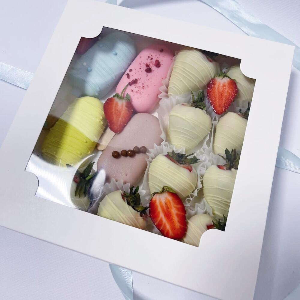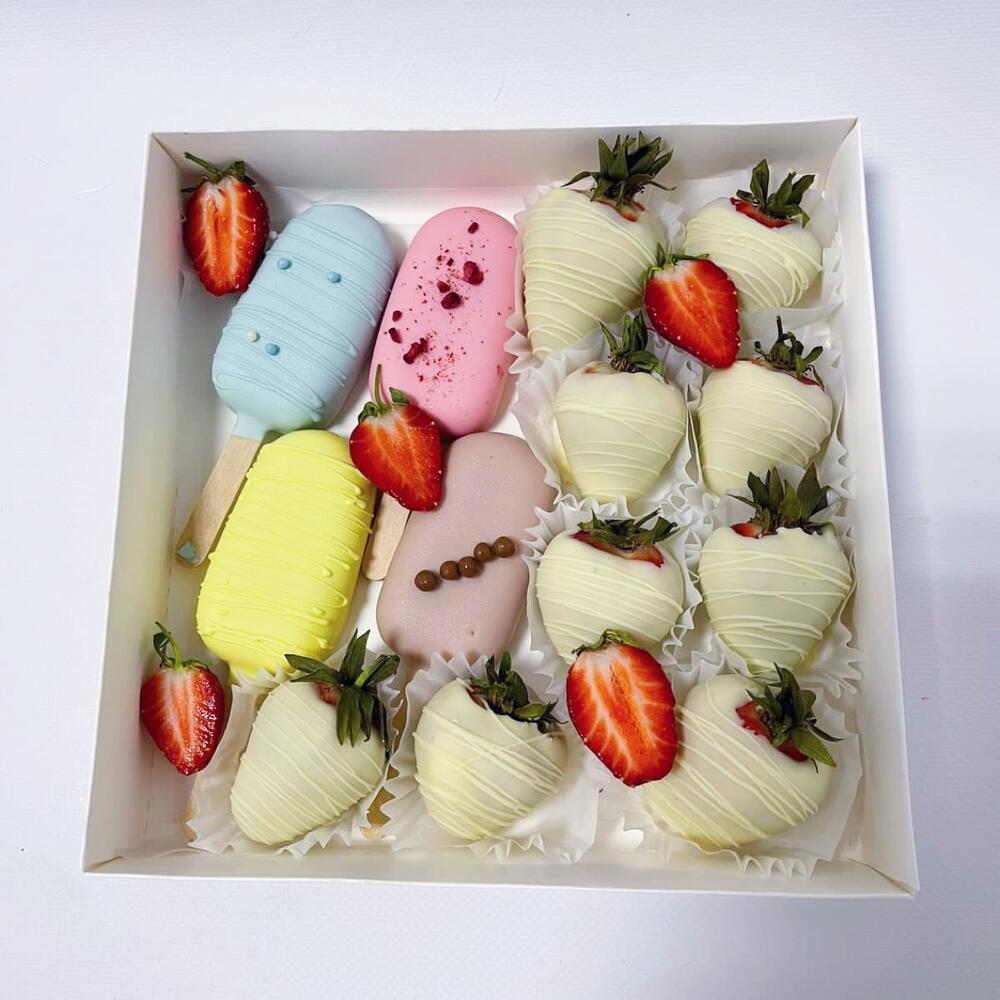 Заказ сделали через приложение без проблем. Время доставки по договорённости. Всё соответствует фото. Муссовые эскимо достойны похвалы, с разными вкусами. Клубника свежая, шоколад неплохой, но бывает лучше. Но наша сладкоежка осталась довольна. Спасибо!