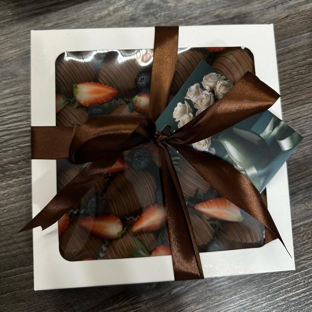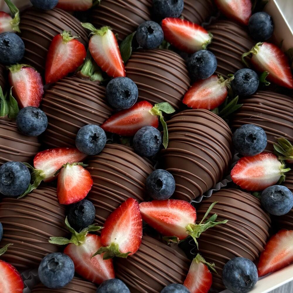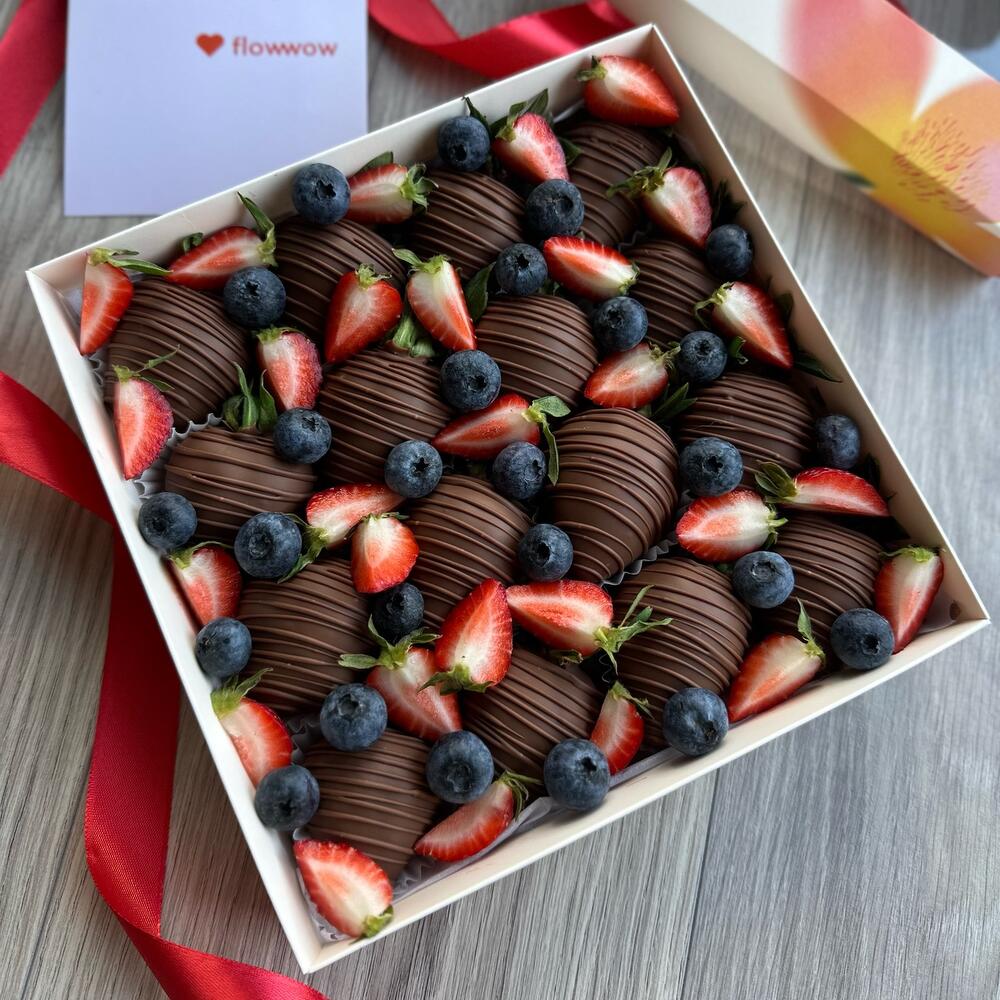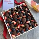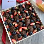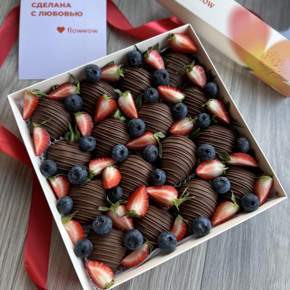 Прекрасный наборчик отборной клубники в шоколаде с порезанной клубникой и голубикой. Отличный подарок для себя и близких. Коробочка/ ленточка/ открыточка / крафтовый пакет. Вес товара : 450-500гр