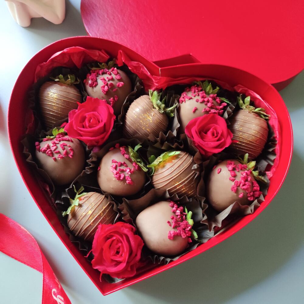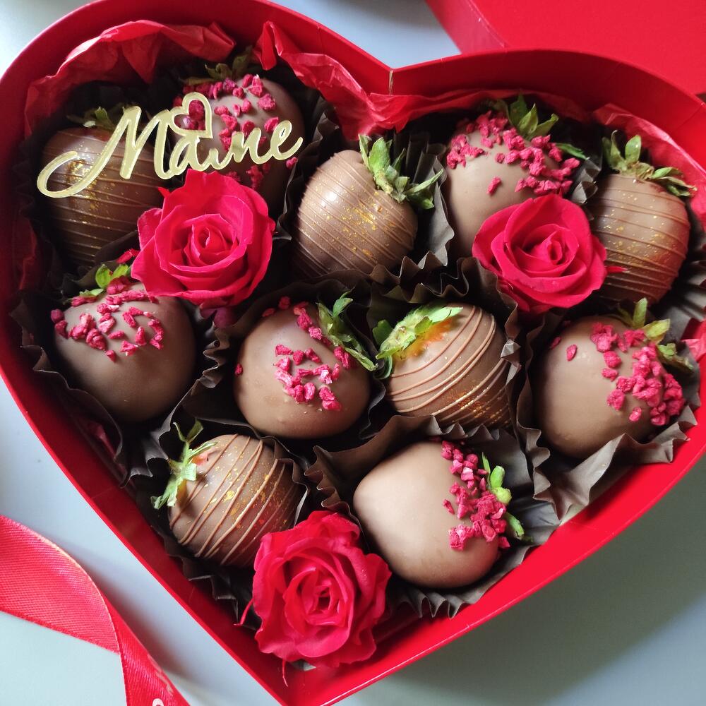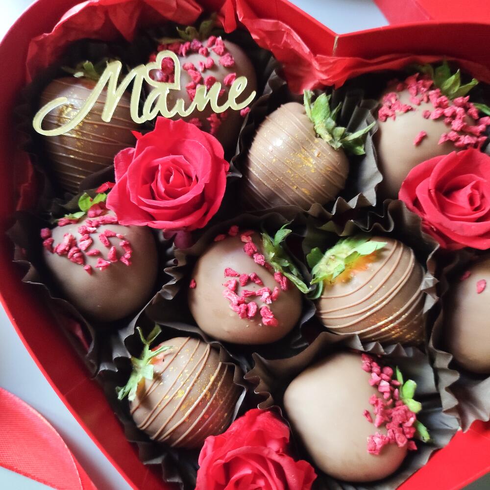 Клубника в шоколаде с розами подарок маме