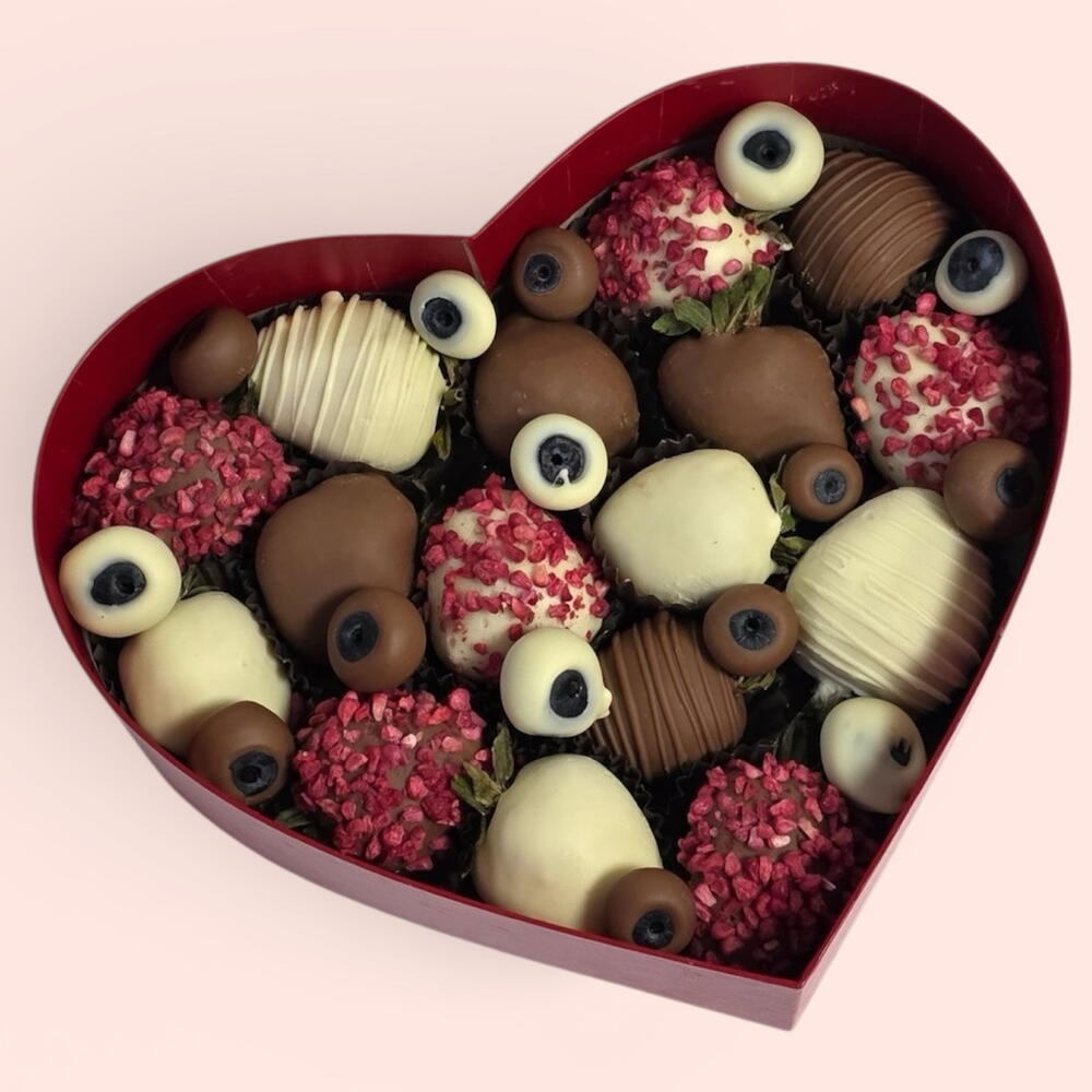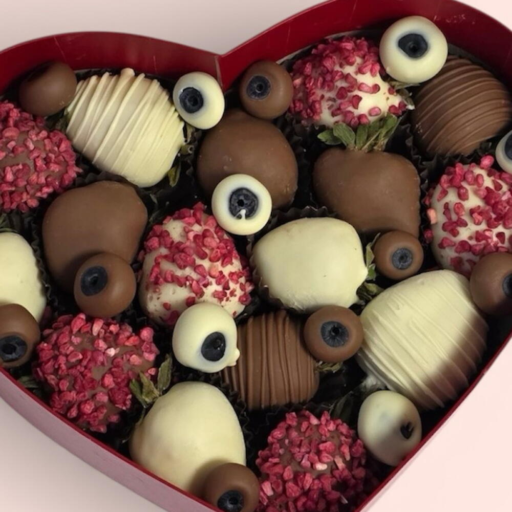 Клубника Голубика Сублимированный малина Бельгийский шоколад Callebaut - какао-массу (тертое какао), сахар, какао-масло, сухое цельное молоко (в молочном/белом), соевый лецитин (эмульгатор) и натуральную ваниль.